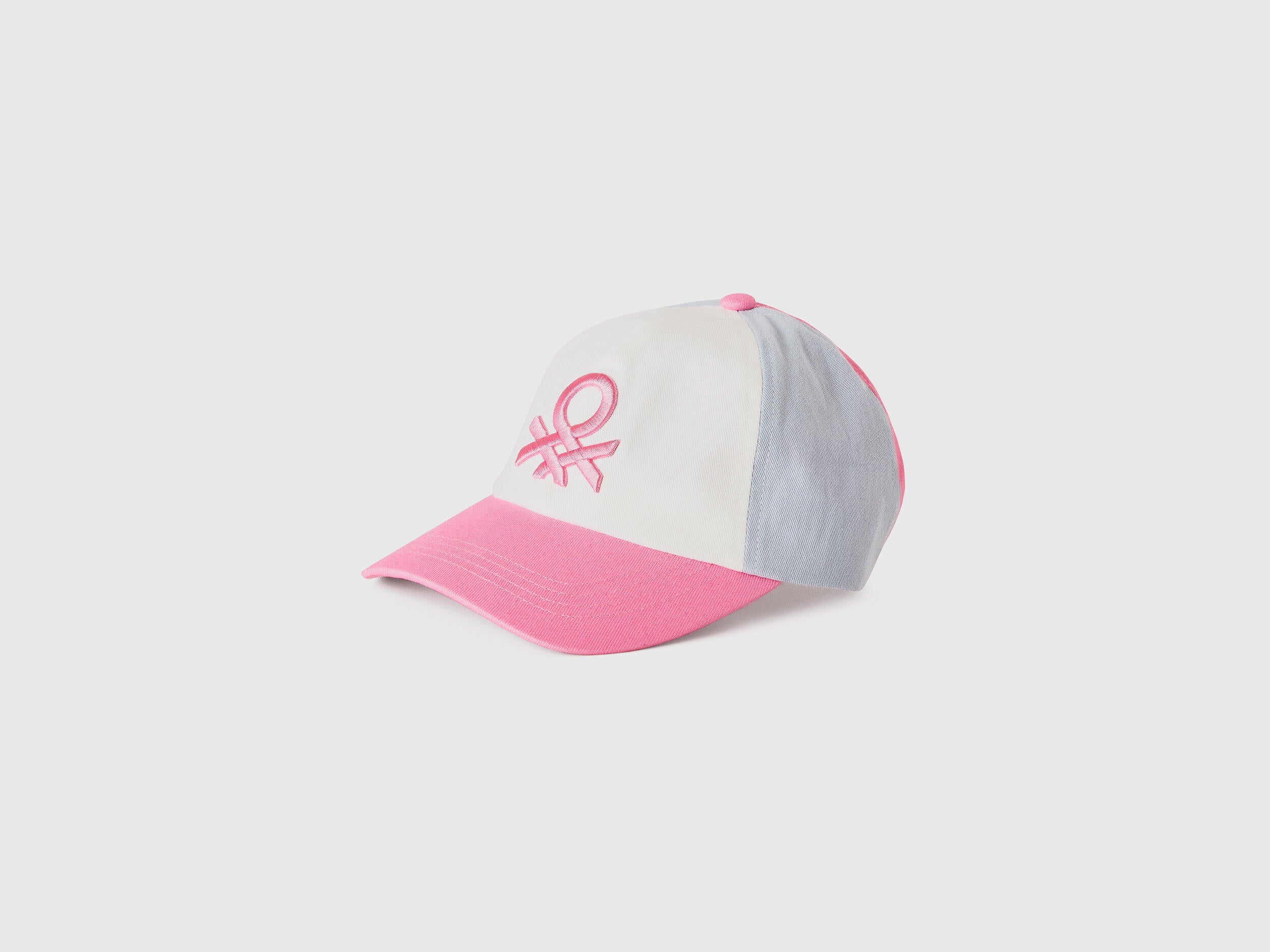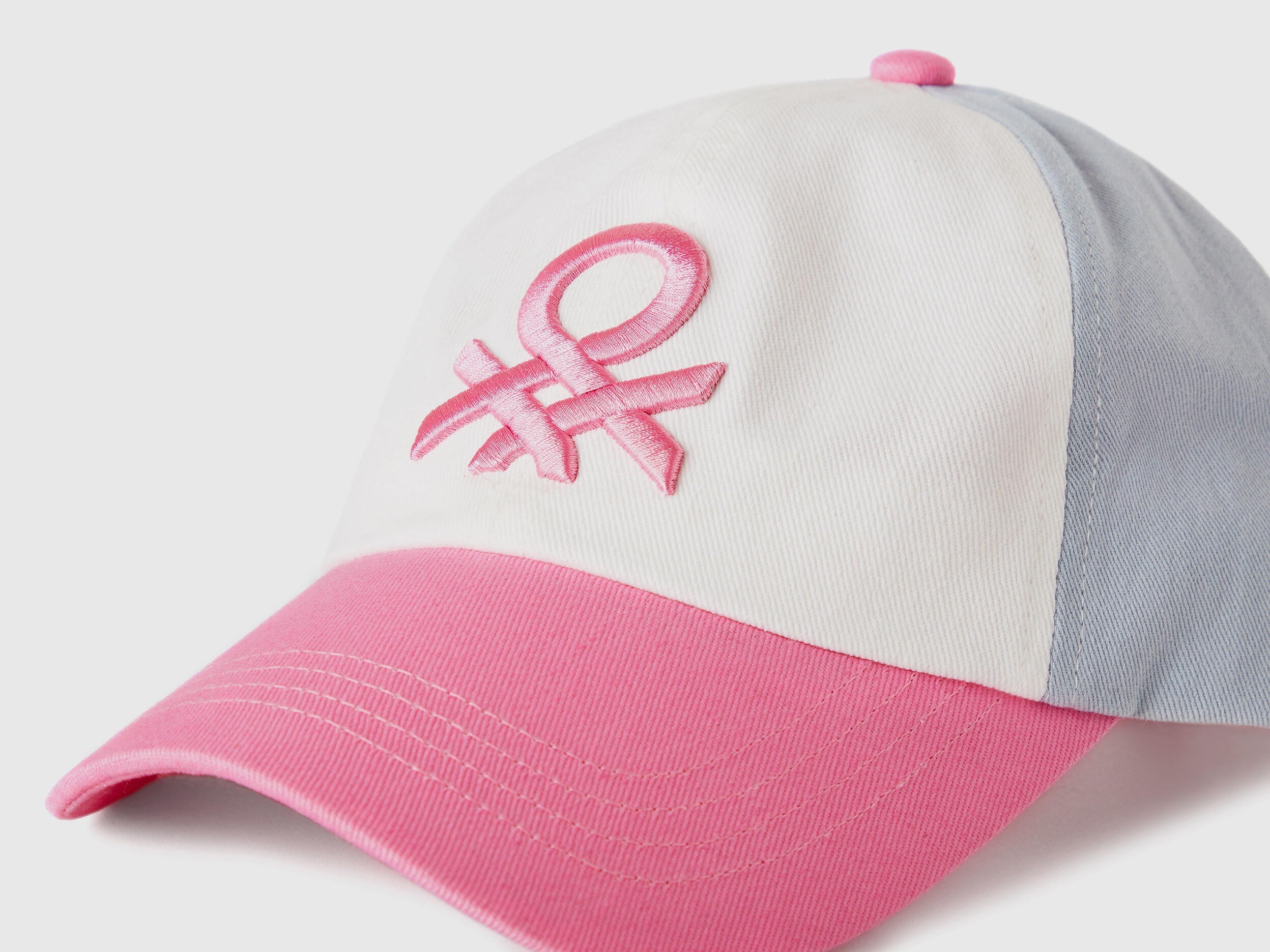 Baseball cap with visor in pure cotton and embossed maxi multicolored logo embroidered on the front. Comfy adjustable strap at the back. Practical and sporty, for perfect street style.