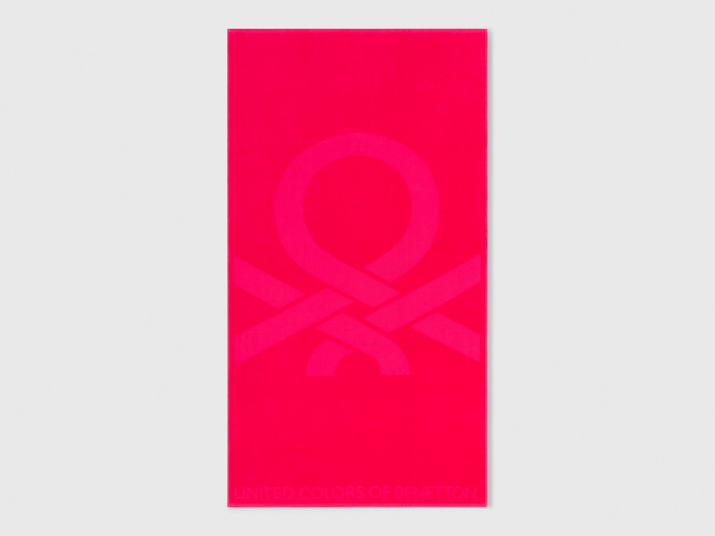 Beach towel in soft solid colored pure cotton terry cloth. Maxi jacquard logo on one side.