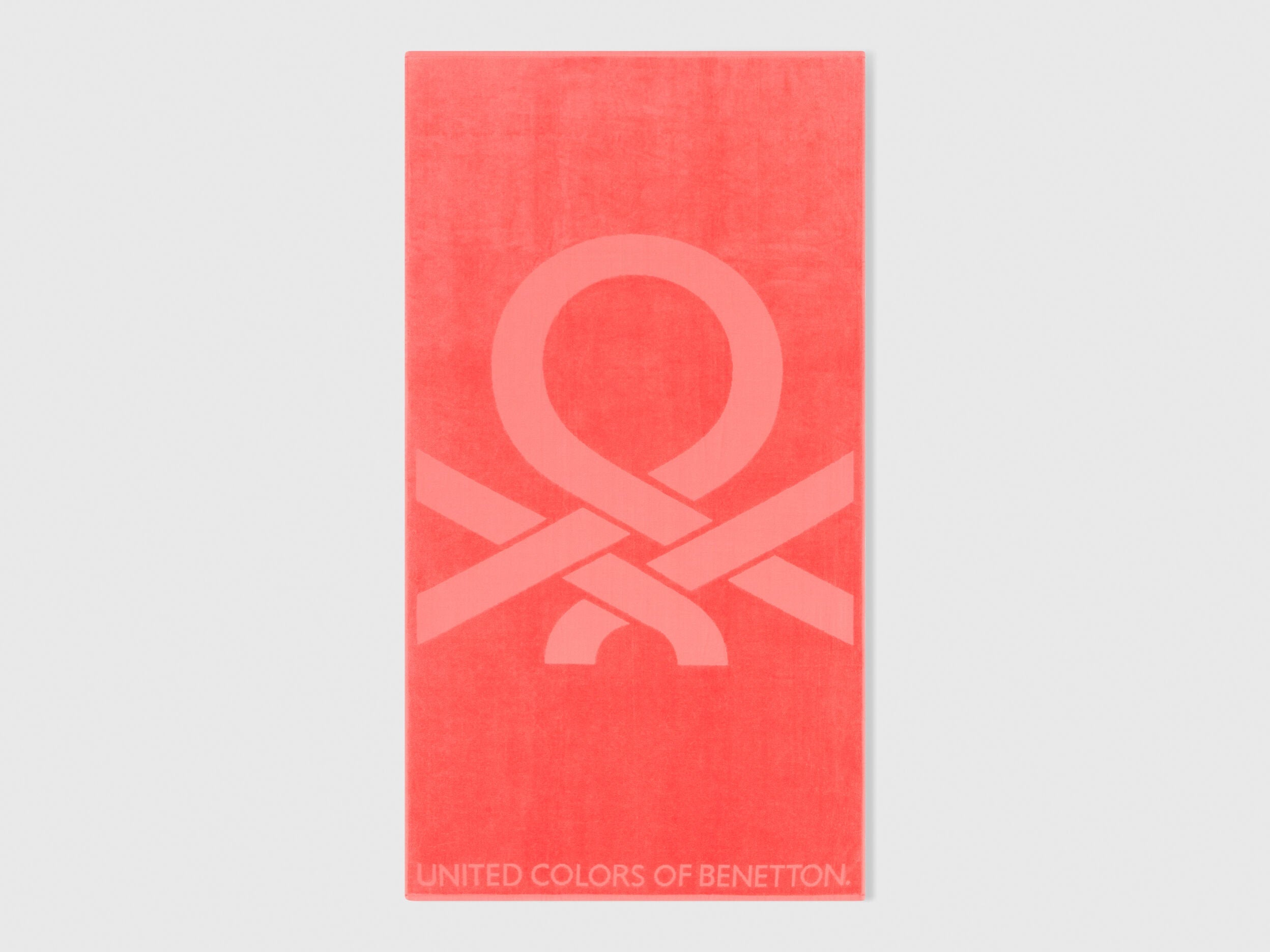Beach towel in soft solid colored pure cotton terry cloth. Maxi jacquard logo on one side.