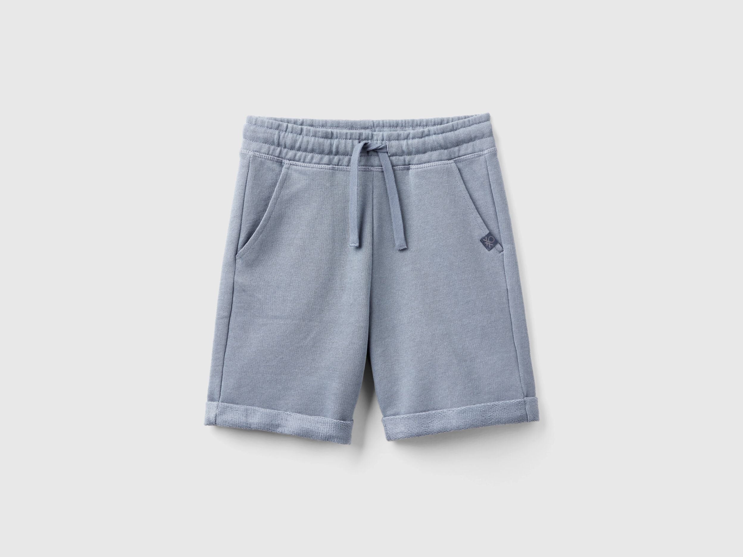 Spring-weight organic cotton fleece shorts. Waist with internal elastic and drawstring, front pockets and cuff fixed at the bottom of the leg. Sporty look and practicality. Article made with fabric containing at least 95% organic cotton.