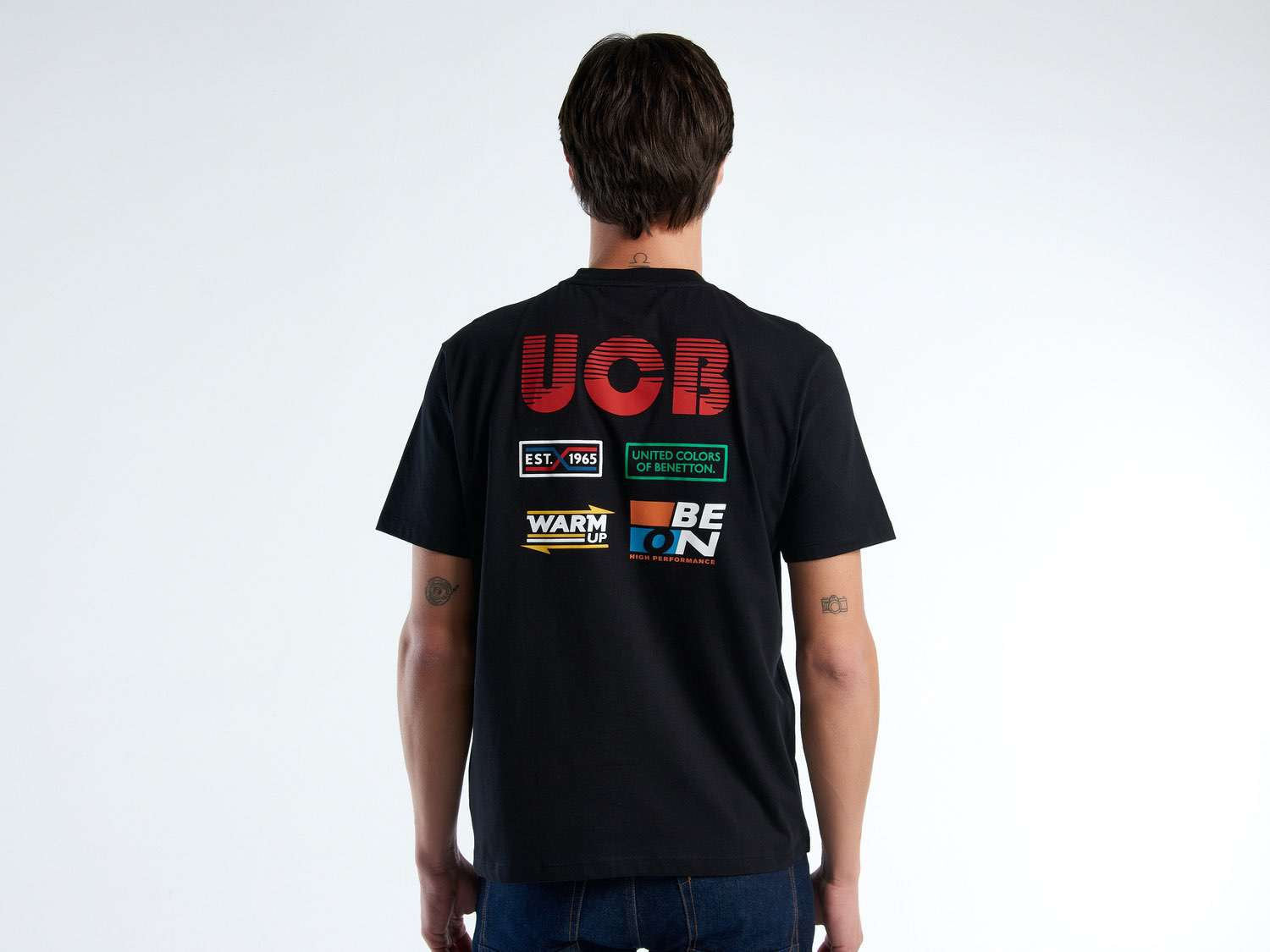 Short sleeve crew neck t-shirt in pure cotton jersey with a relaxed fit. Text prints with logos on the front and back. A vintage touch for a new cult piece of the men's casual wardrobe, in pure Benetton style.