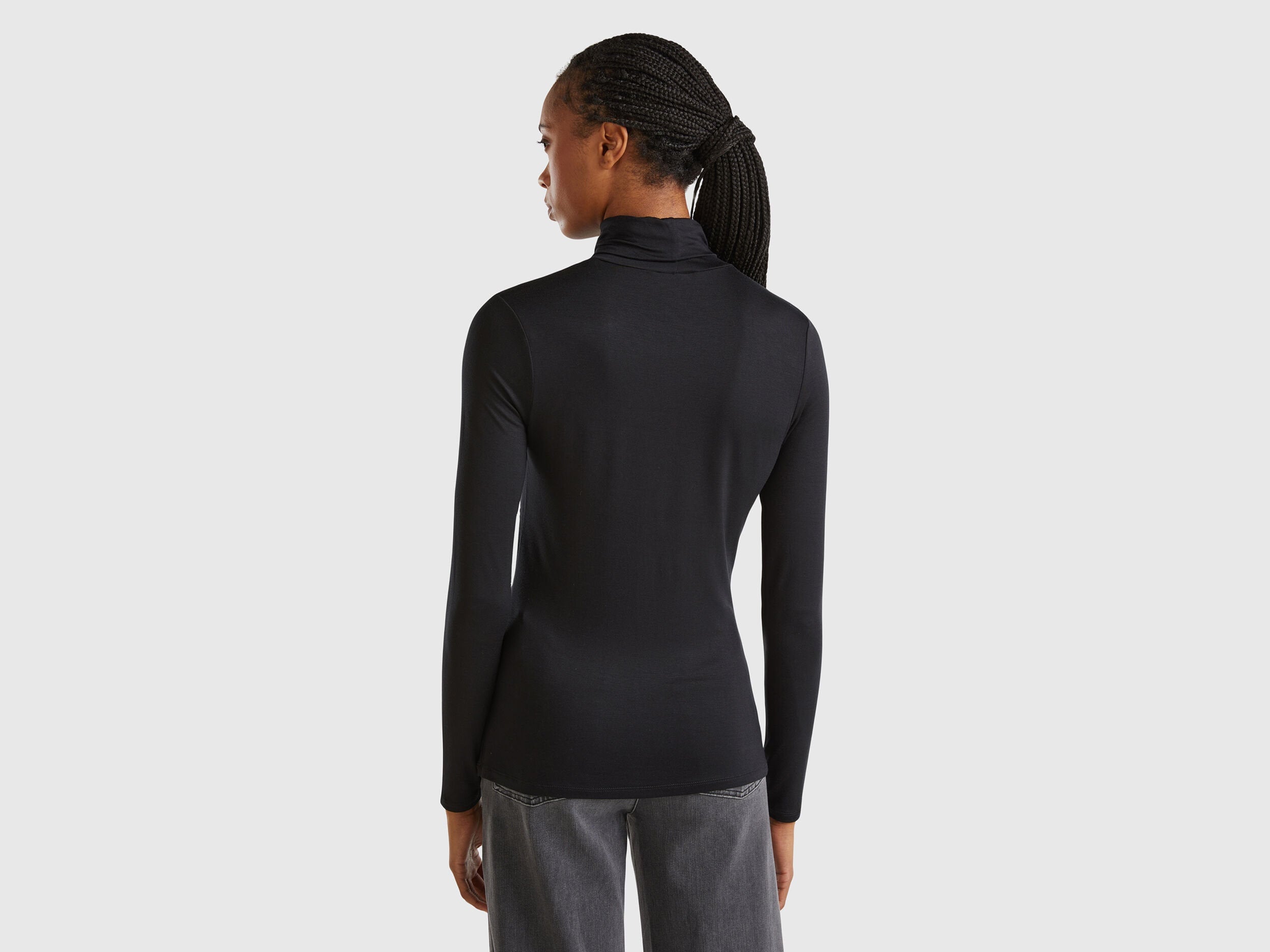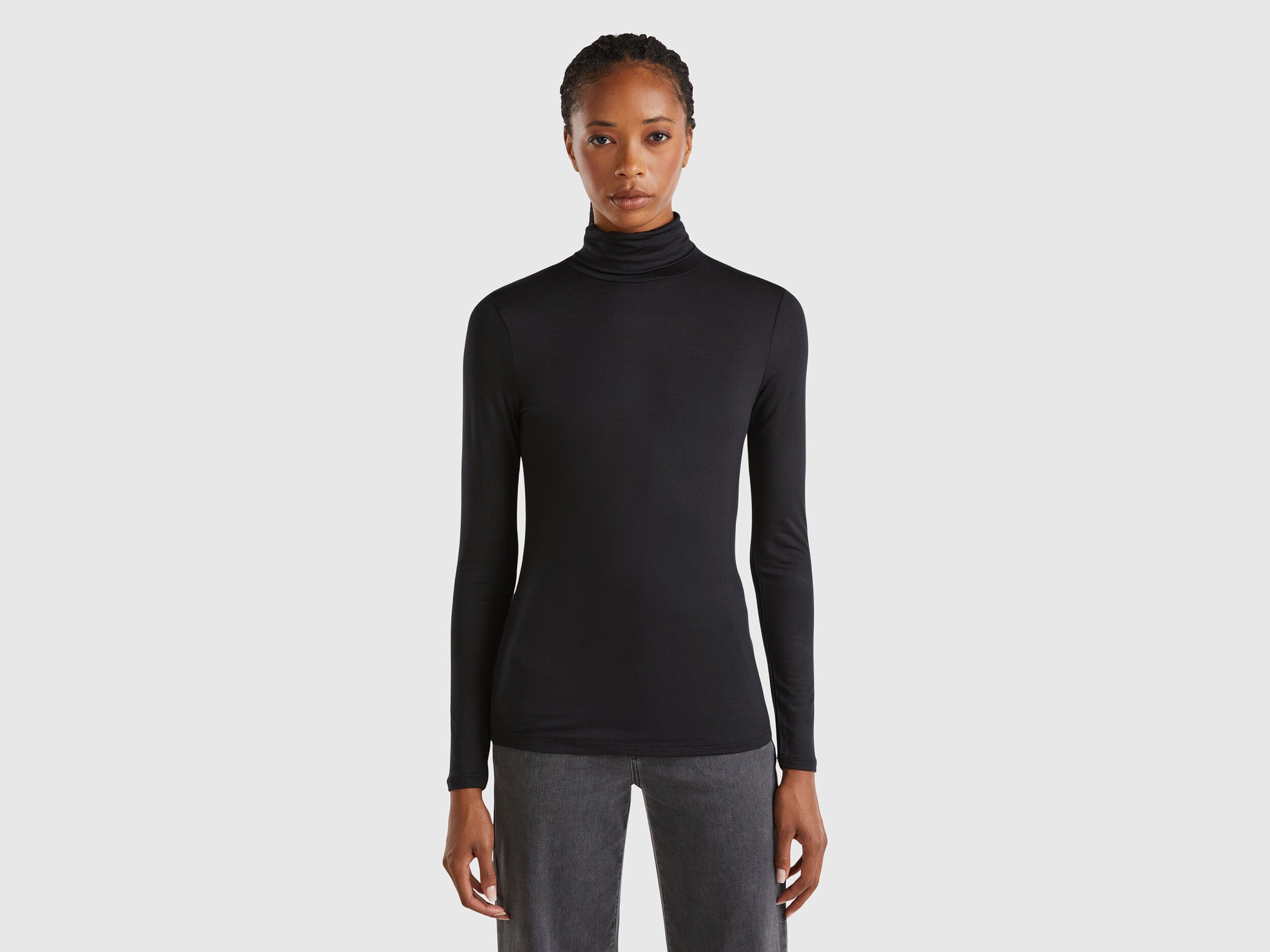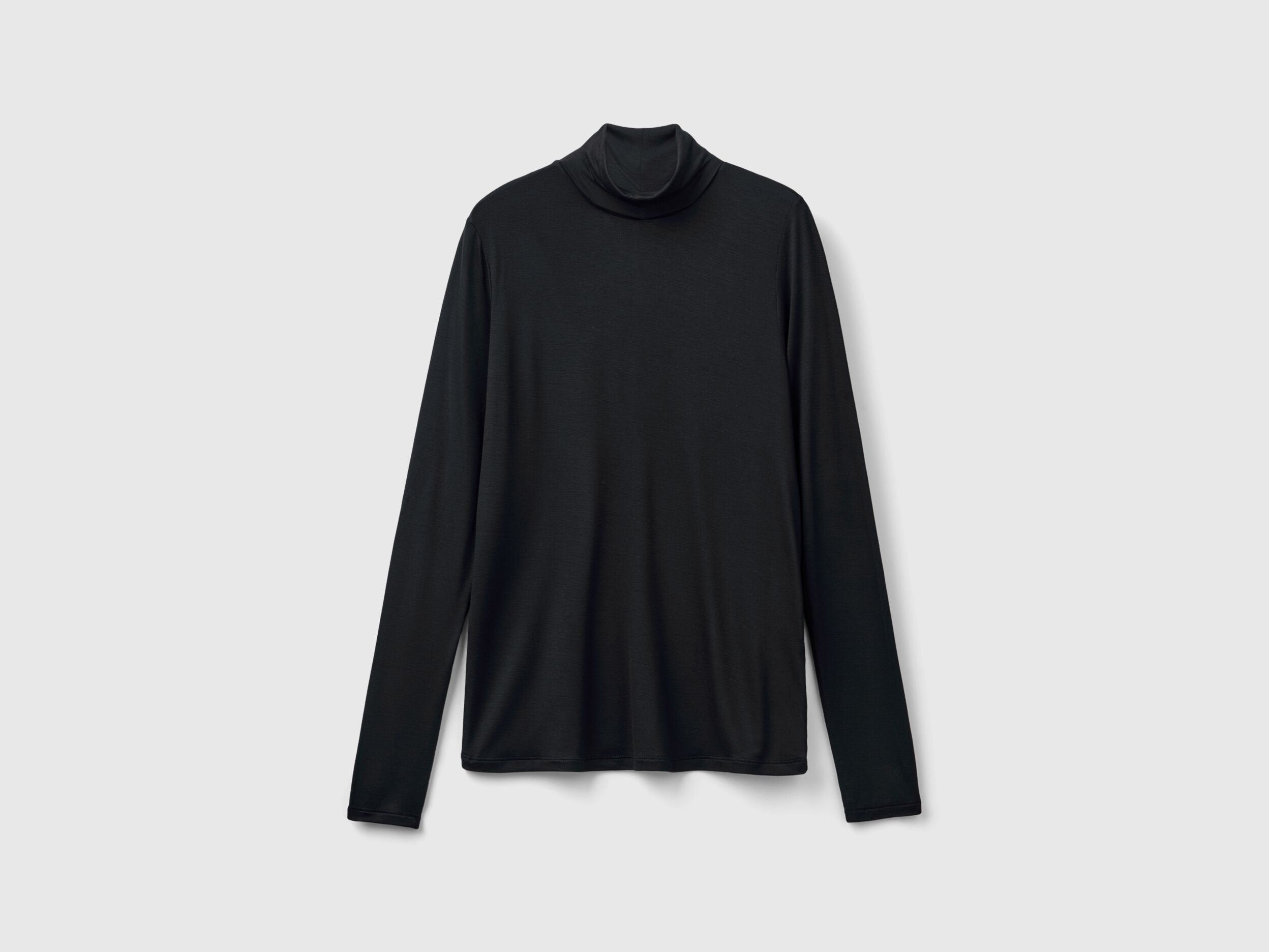 Long sleeve t-shirt with high turtle neck and regular fit. Made in stretch viscose, produced using wood from certified forests and respecting the highest environmental standards