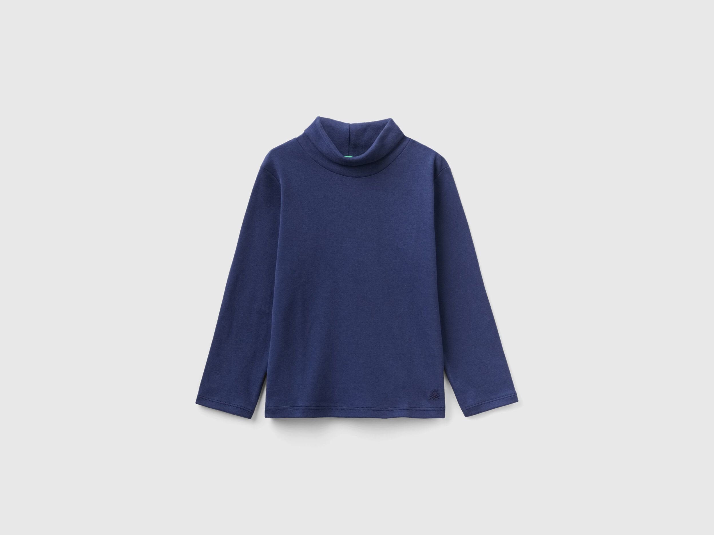 Long sleeve t-shirt in pure warm organic cotton. High folded-over collar and tone-on-tone embroidered logo at left bottom. Essential style for a casual and everyday look.