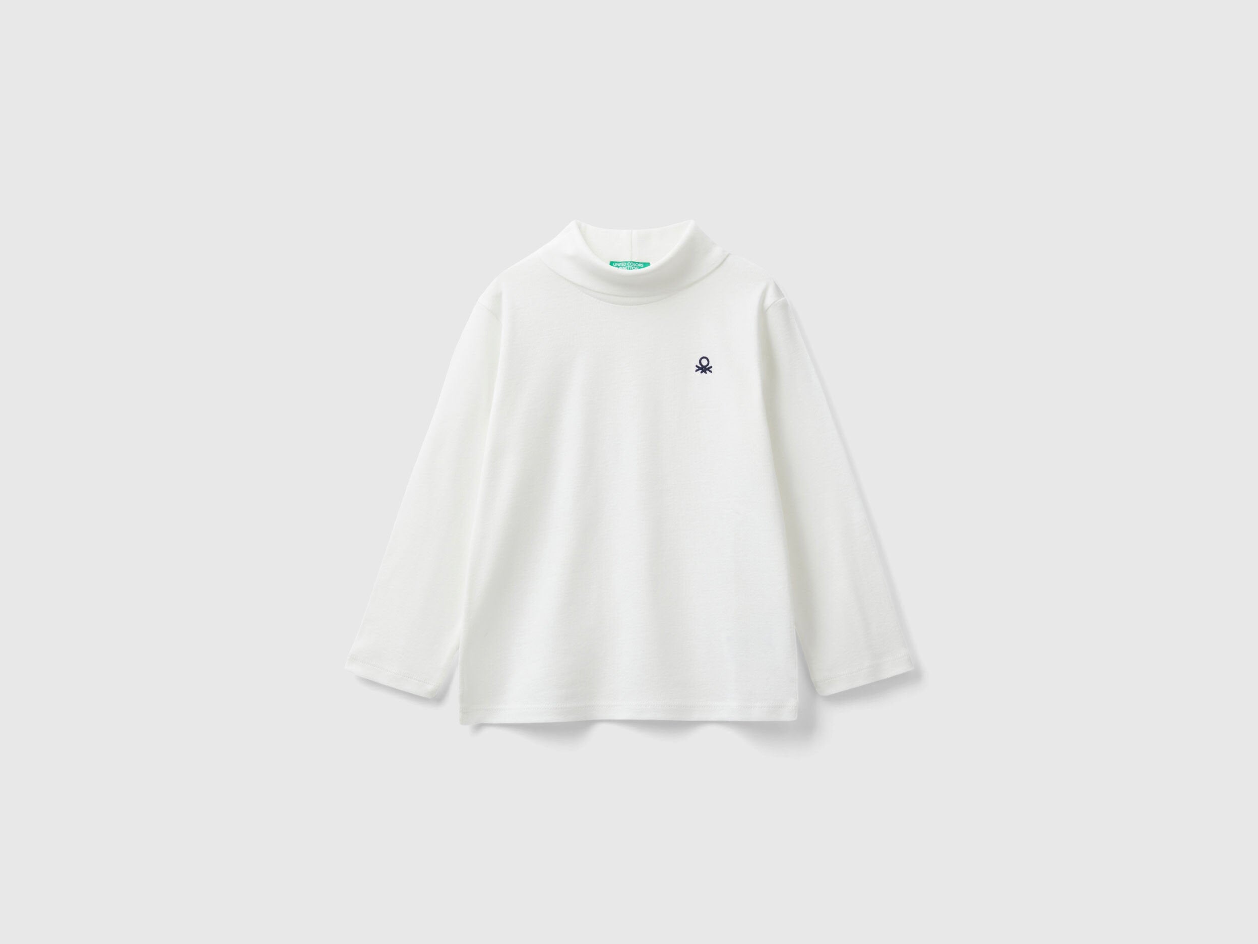 Long sleeve t-shirt in pure warm organic cotton. High turtleneck and embroidered tone-on-tone logo badge at left breast. Logo embroidered at left breast. Basic, comfy and versatile.