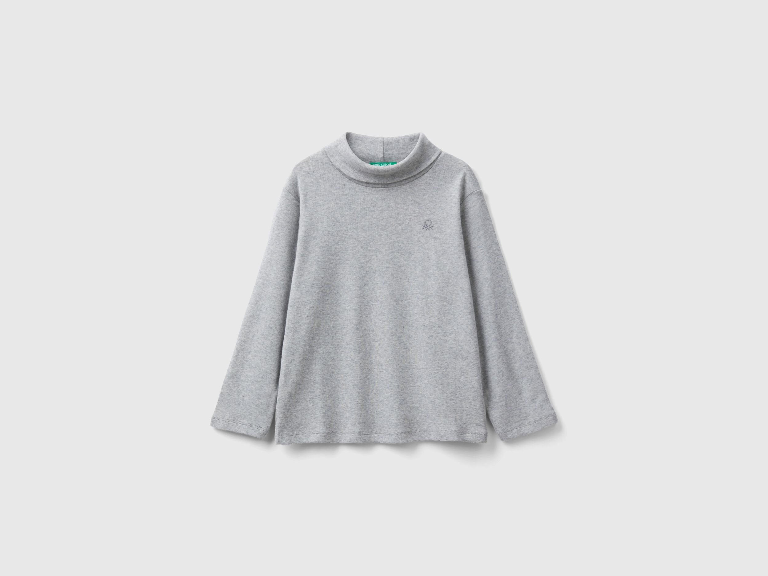 Long sleeve t-shirt in pure warm organic cotton. High turtleneck and embroidered tone-on-tone logo badge at left breast. Logo embroidered at left breast. Basic, comfy and versatile.