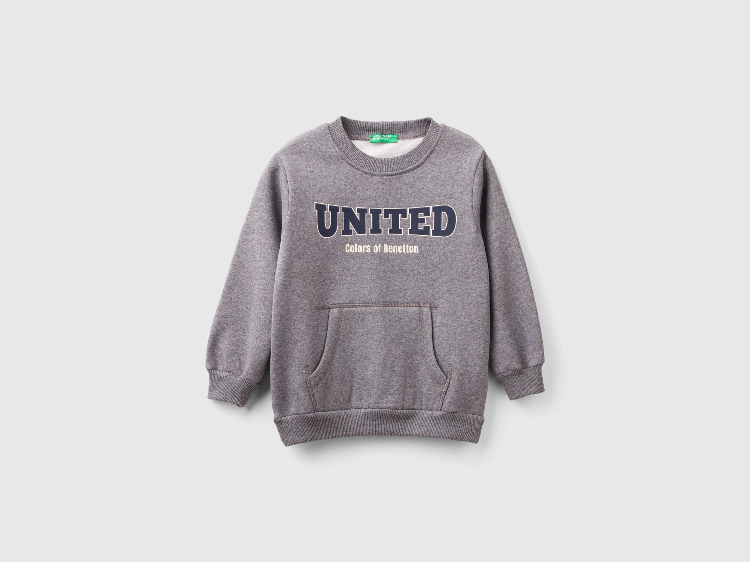 Long sleeve pullover sweatshirt in warm cotton blend. Round neckline, kangaroo pocket applied on the front. Regular fit and logo print on the front. Perfect for the cold season.