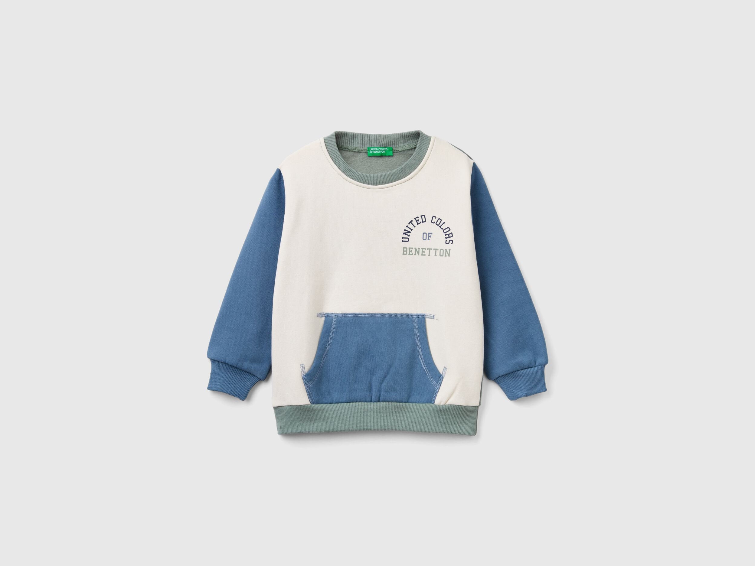 Long sleeve pullover sweatshirt in warm cotton blend. Round neckline, kangaroo pocket applied on the front. Regular fit and logo print on the front. Perfect for the cold season.
