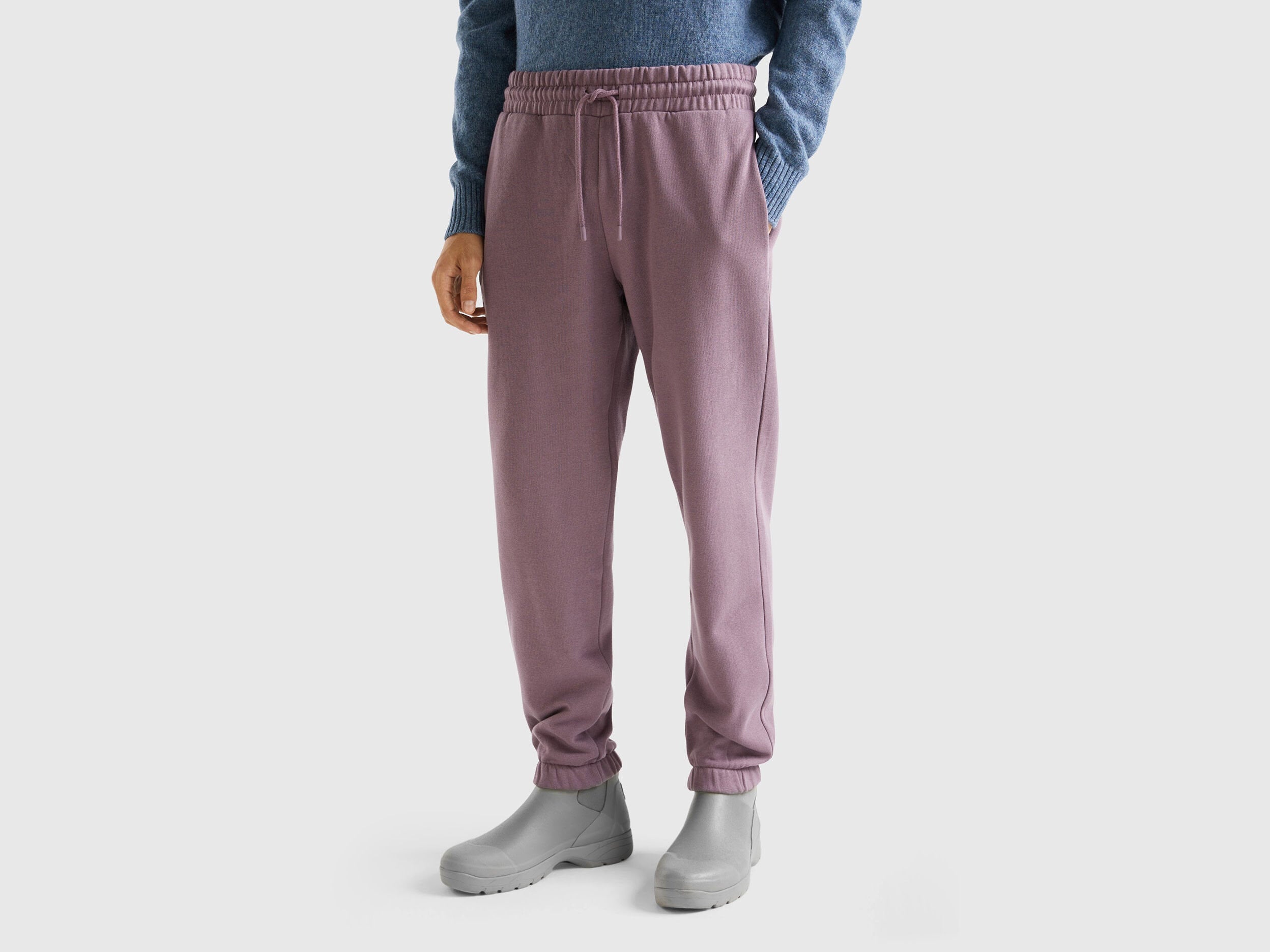 Long sweatpants in warm cotton blend. Elastic drawstring waist, pockets inserted at the sides and leg bottoms with inner elastic. Tone-on-tone embroidered logo above the back pocket. Comfortable and sporty style, perfect for relaxed looks.