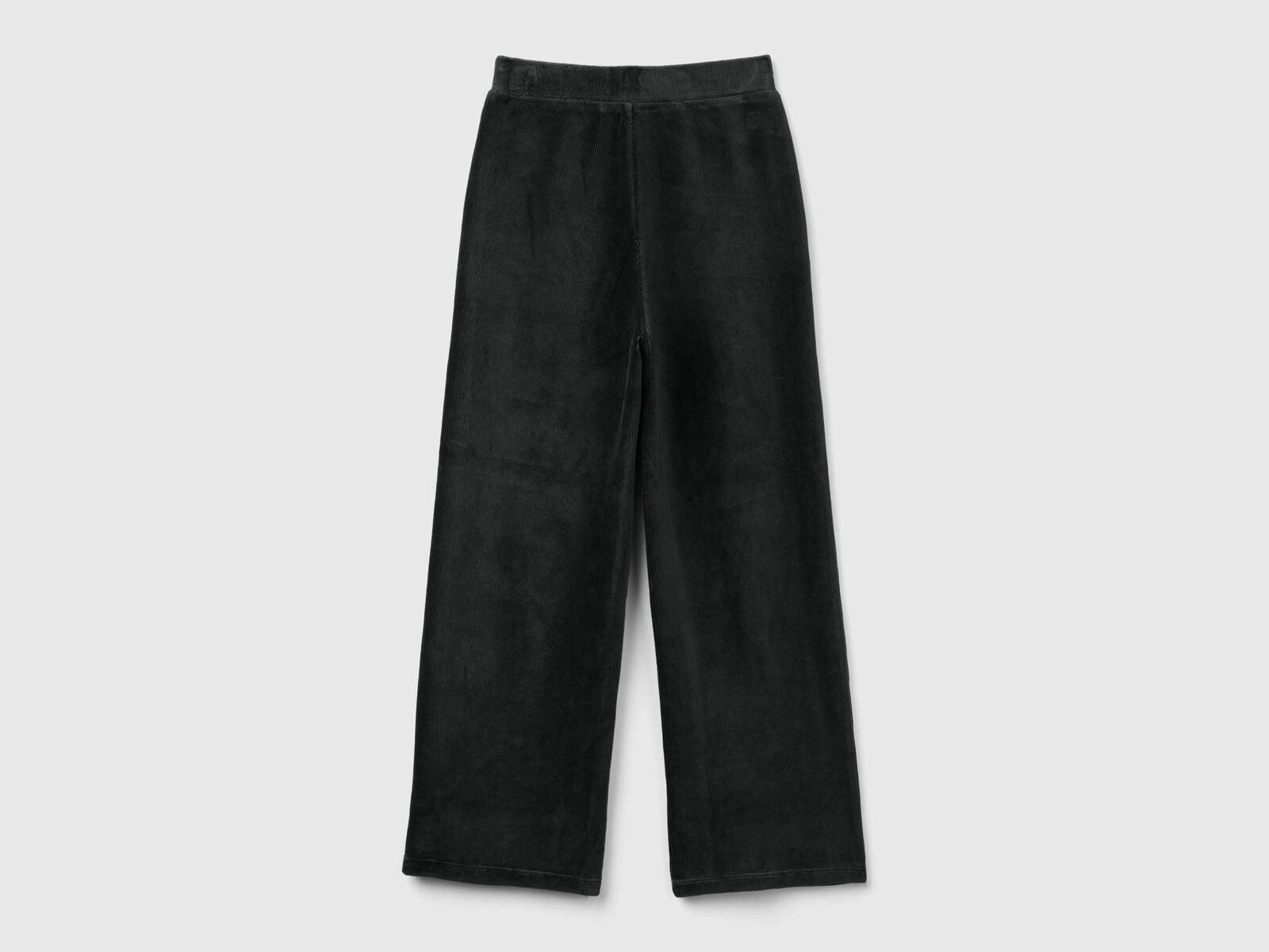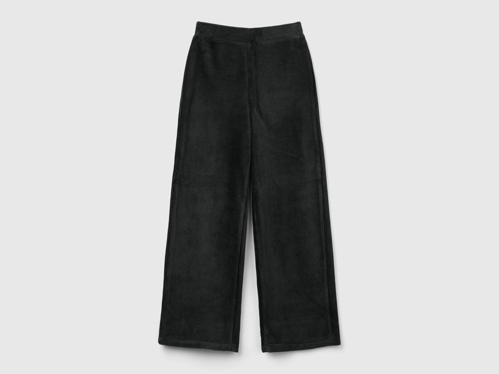 Long trousers in soft stretch cotton blend chenille. Wide and relaxed leg, comfortable inner elastic at the waist. Cool, comfortable and everyday.