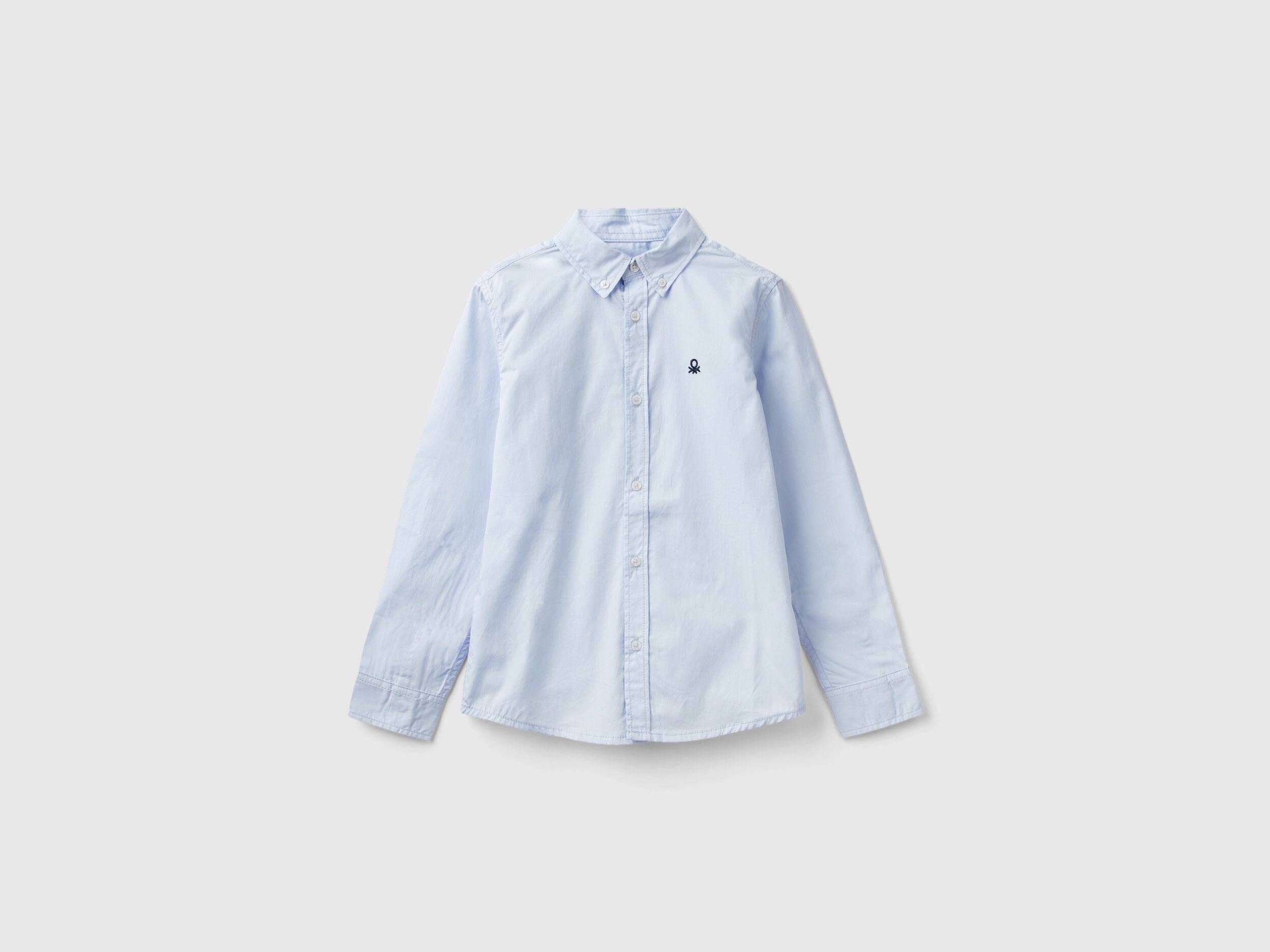 Long sleeve shirt in yarn dyed pure cotton. Classic collar with buttons, front button opening and embroidered logo on the left breast. Rounded bottom that's slightly longer at back. Casual style for a garment that lends itself to multiple occasions of use.