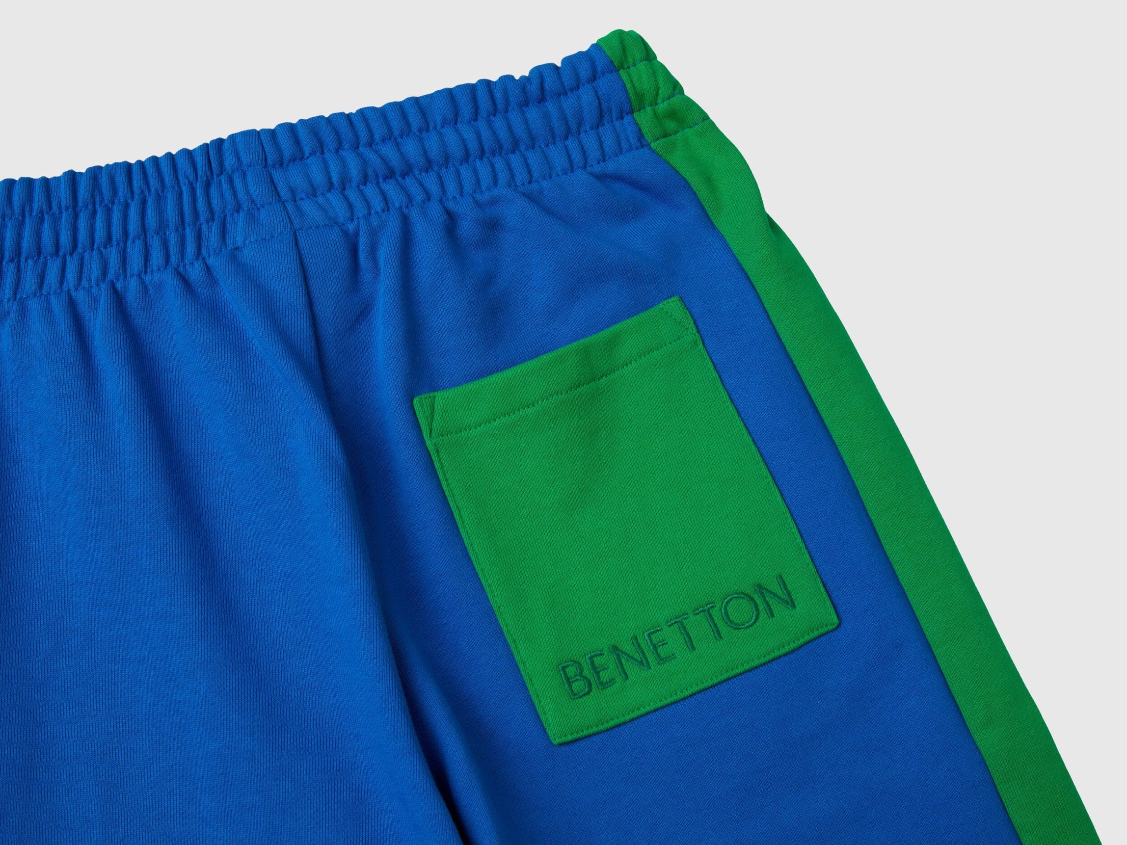 Long sweatpants in pure cotton with balloon fit. Inner elastic and drawstring at waist, side band and clashing pocket applique at back. A comfy yet cool piece, perfect for running and playing.