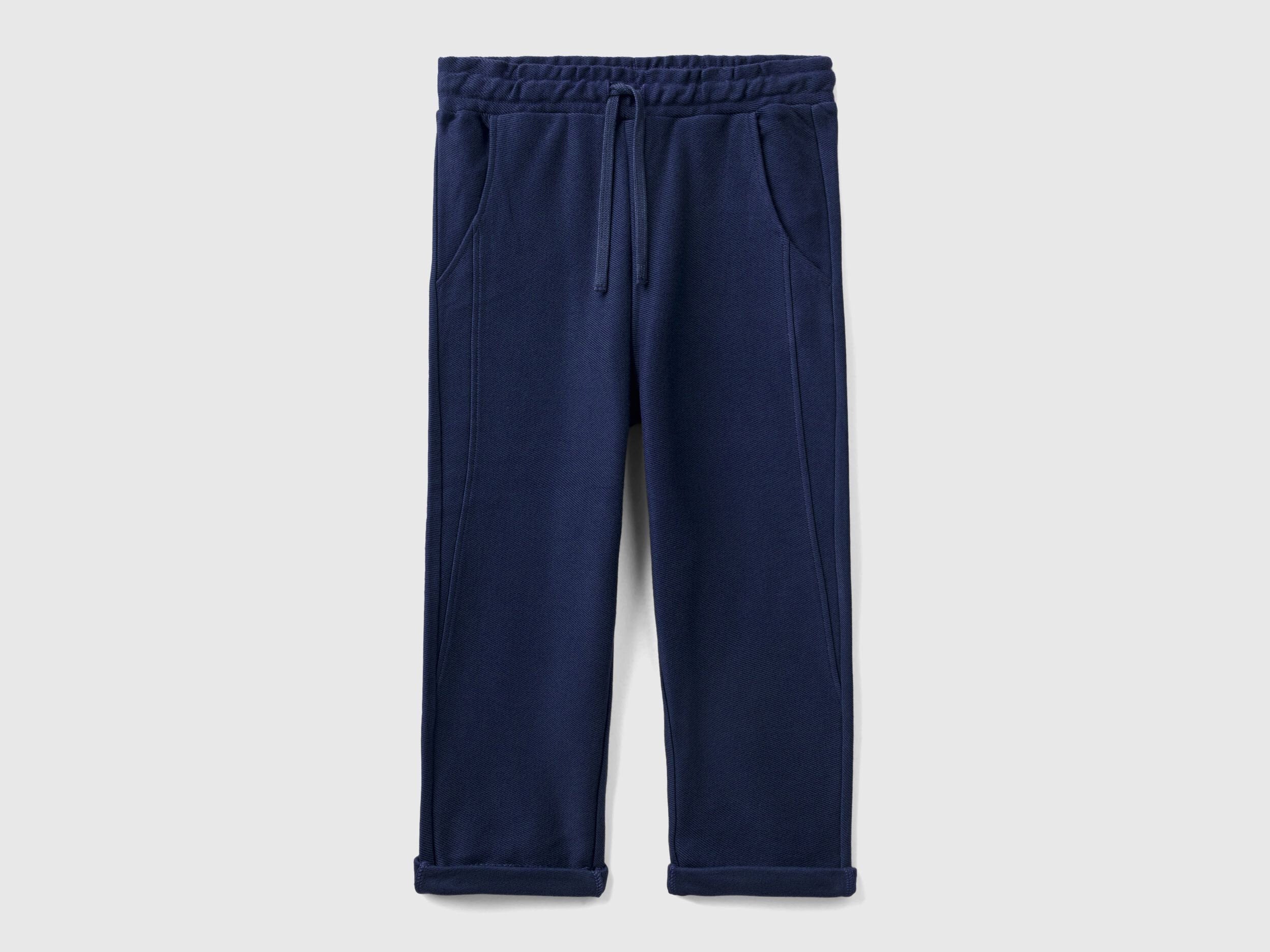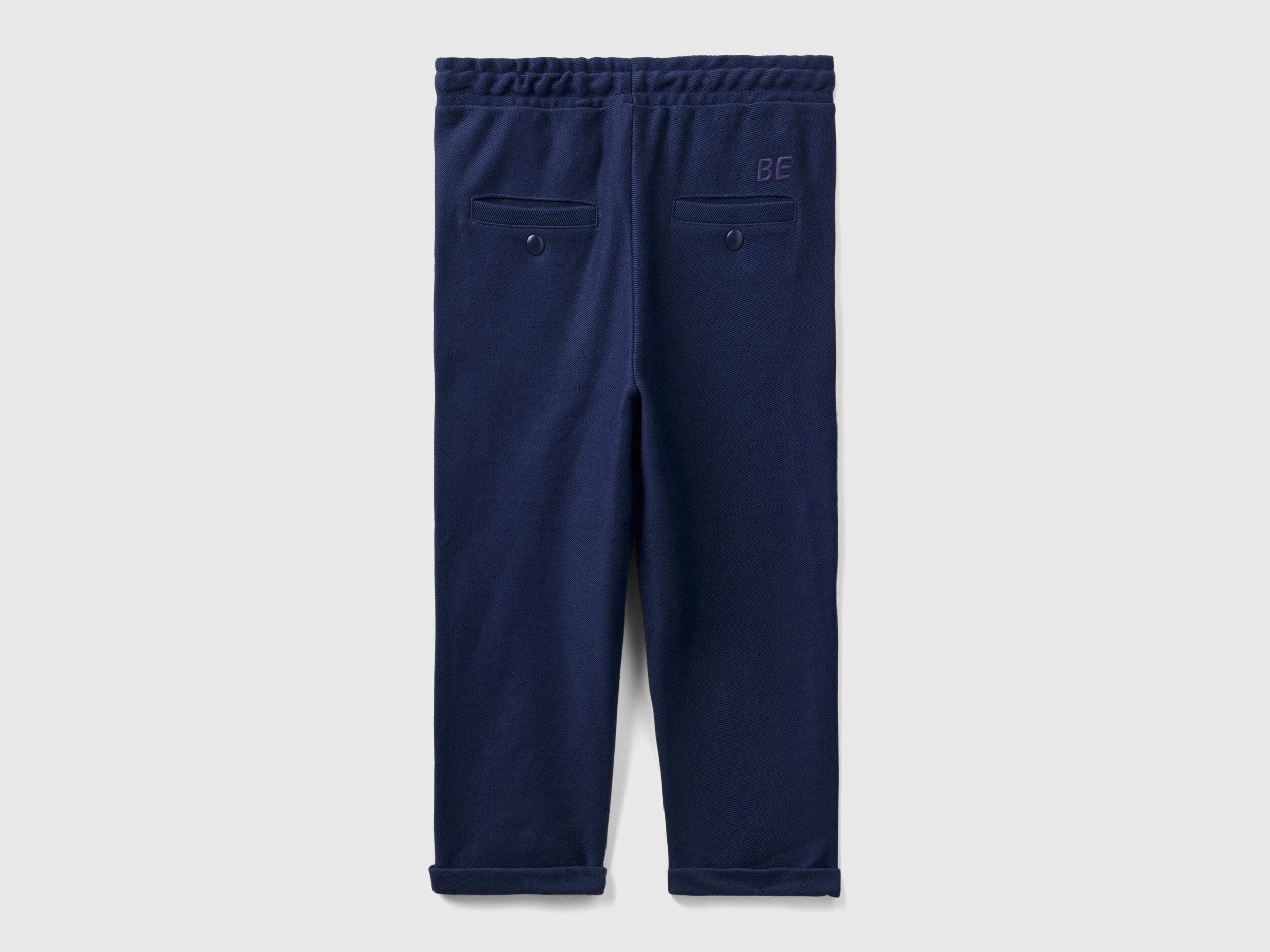 Long carrot fit sweatpants in cotton and viscose blend. Inner elastic and drawstring at waist, side pockets, "BE" embroidery on one of the two welt pockets closed by a button at the back. Sporty style and utmost practicality.