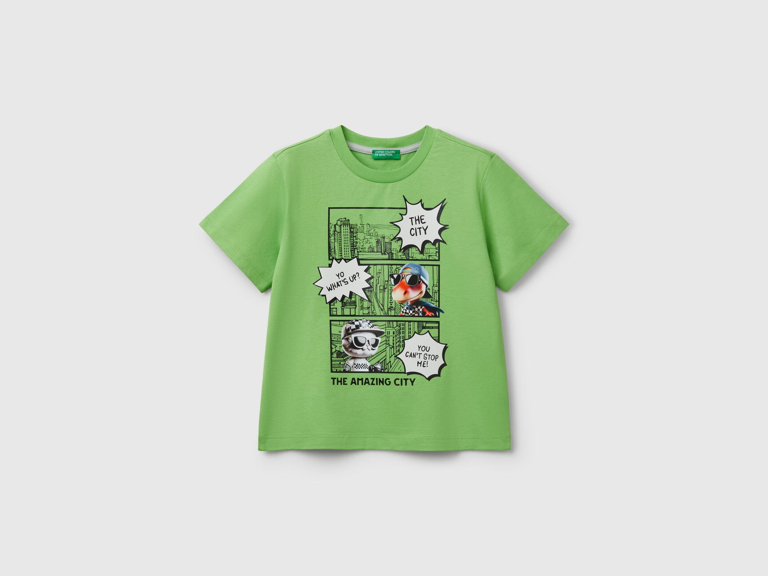 Crew neck t-shirt in soft pure organic cotton fabric. Short sleeves and maxi print on the front. Casual and original, perfect with a pair of jeans. Item made with material containing at least 95% organic cotton.