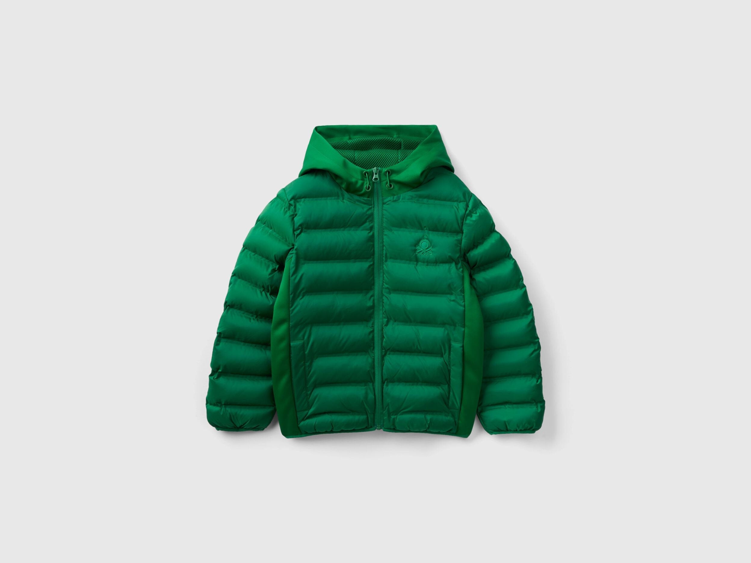 Padded jacket in technical fabric, with side details and neoprene hood. Regular fit, zip closure, front pockets, patch logo at left breast. Perfect for the start of the season, to stay outdoors even on cooler days.