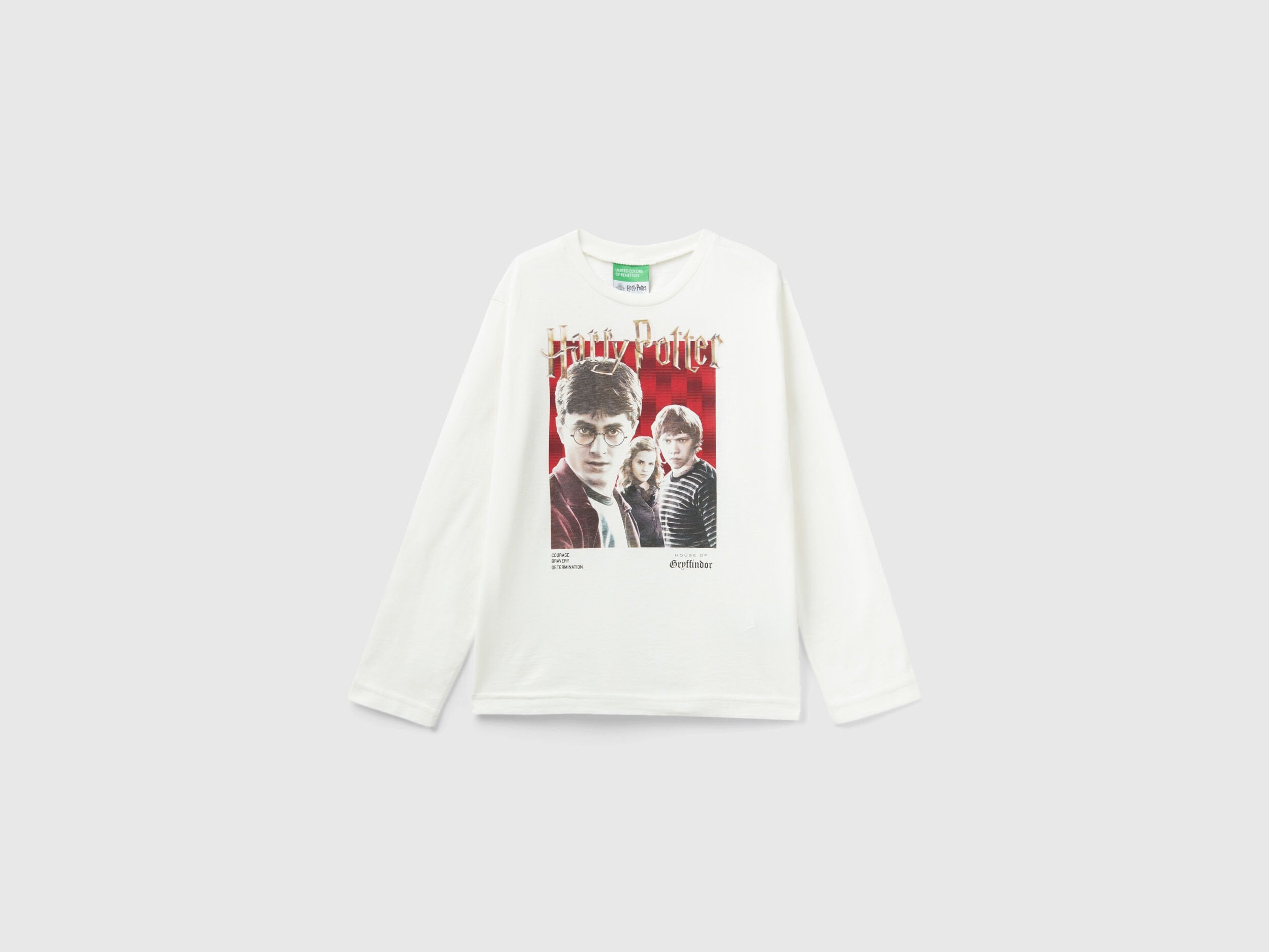 Crew neck t-shirt in pure warm cotton. Relaxed fit, long sleeves and slightly dropped shoulder. Front maxi photographic print inspired by Harry Potter. For young fantasy fans.