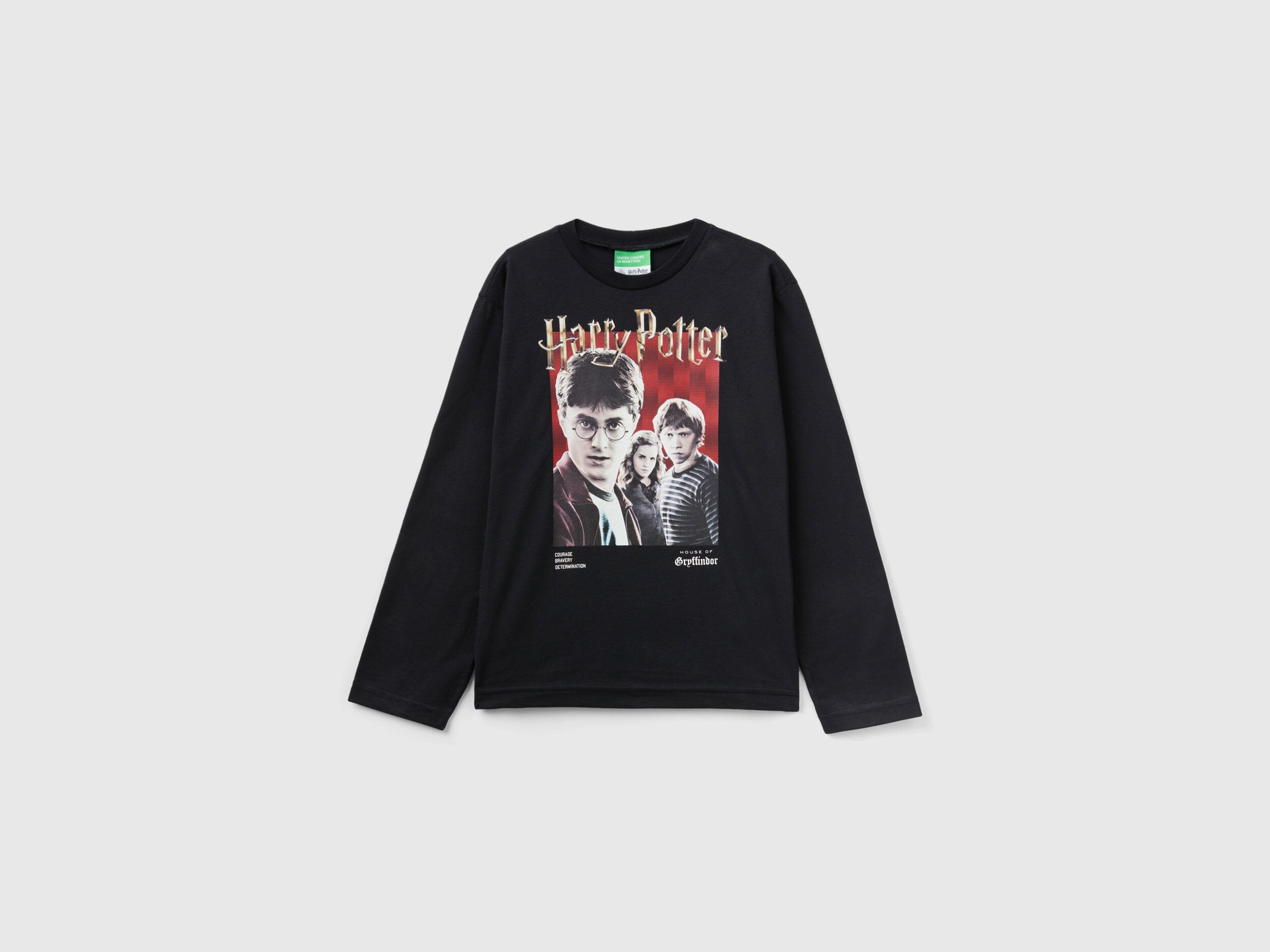 Crew neck t-shirt in pure warm cotton. Relaxed fit, long sleeves and slightly dropped shoulder. Front maxi photographic print inspired by Harry Potter. For young fantasy fans.