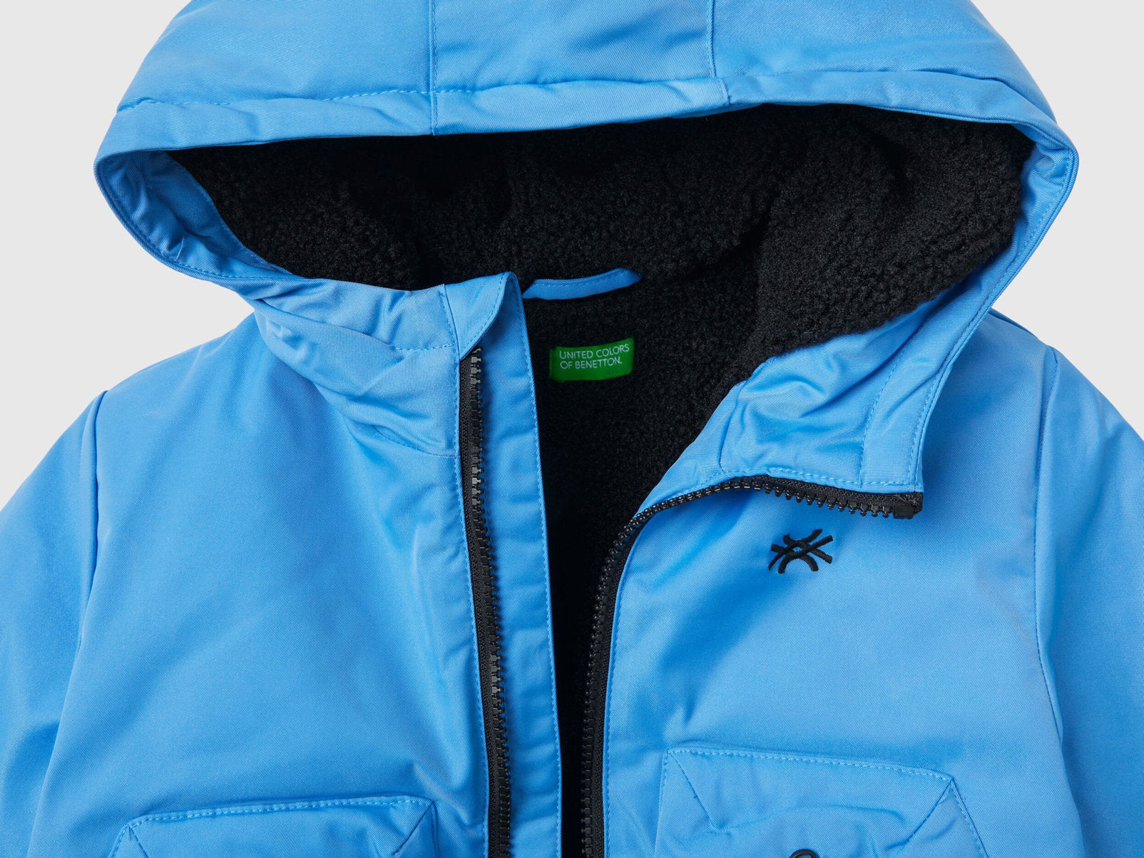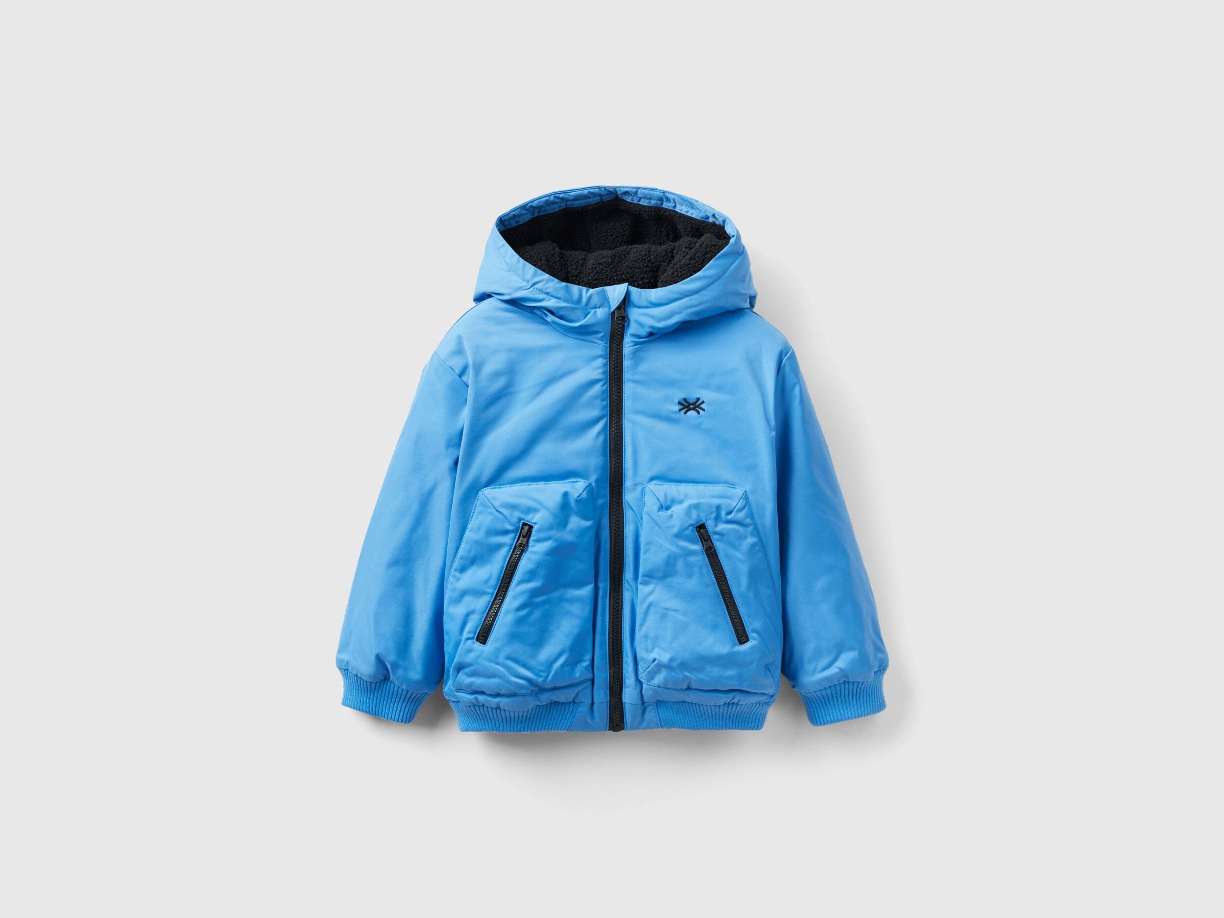 Padded bomber model jacket lined in faux fur. Loose fit, front zip opening, front patch pockets with zipper. Logo embroidered at left breast. A cool and contemporary piece, perfect to protect you from the cold.