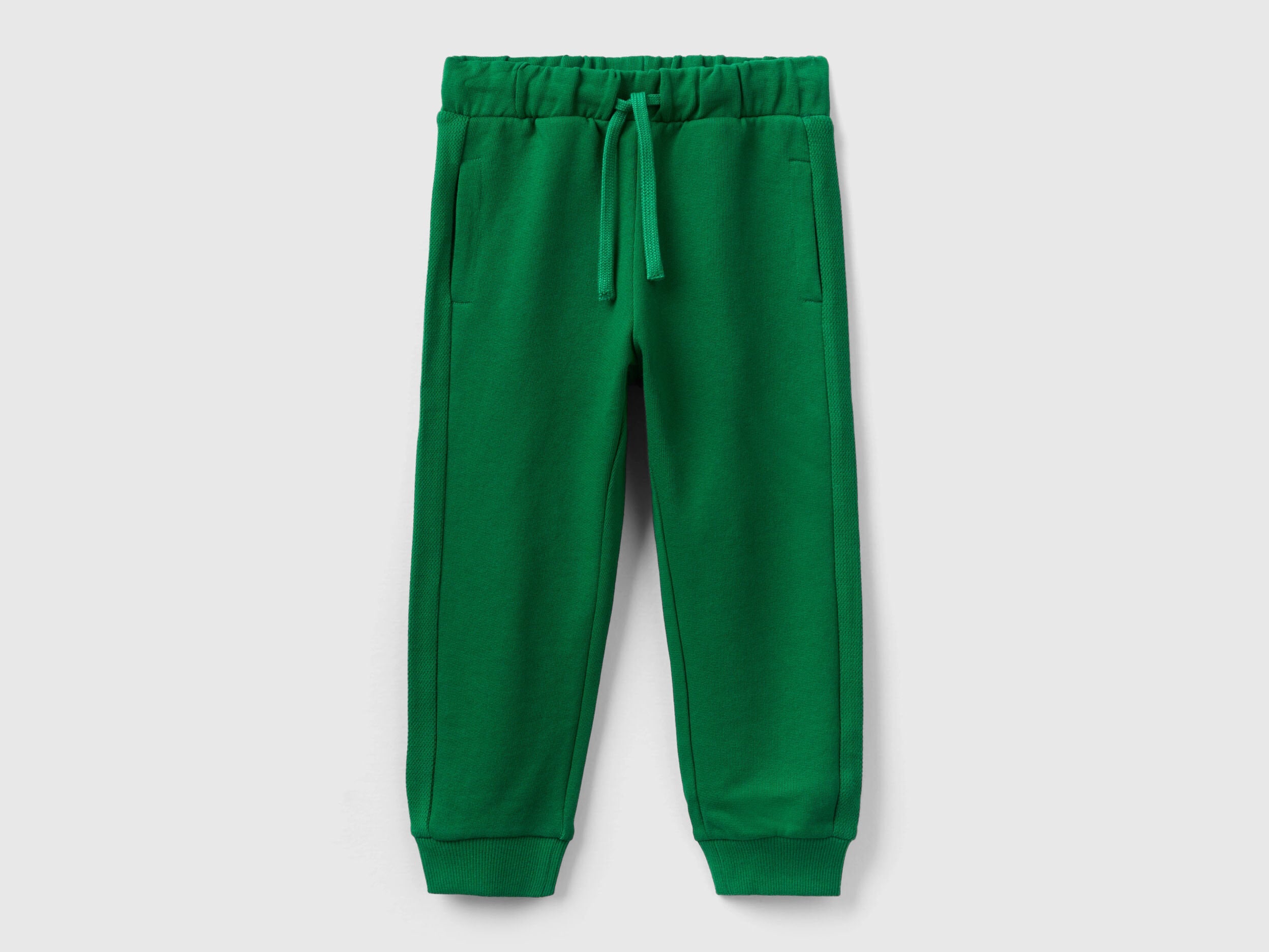 Long sweatpants in pure cotton with consistent yet light feel. Side bands and pockets on back and in fabric with embossed weave. Stretch waist with drawstring, "BE" embroidery on the back. Regular fit, for a sporty and everyday piece