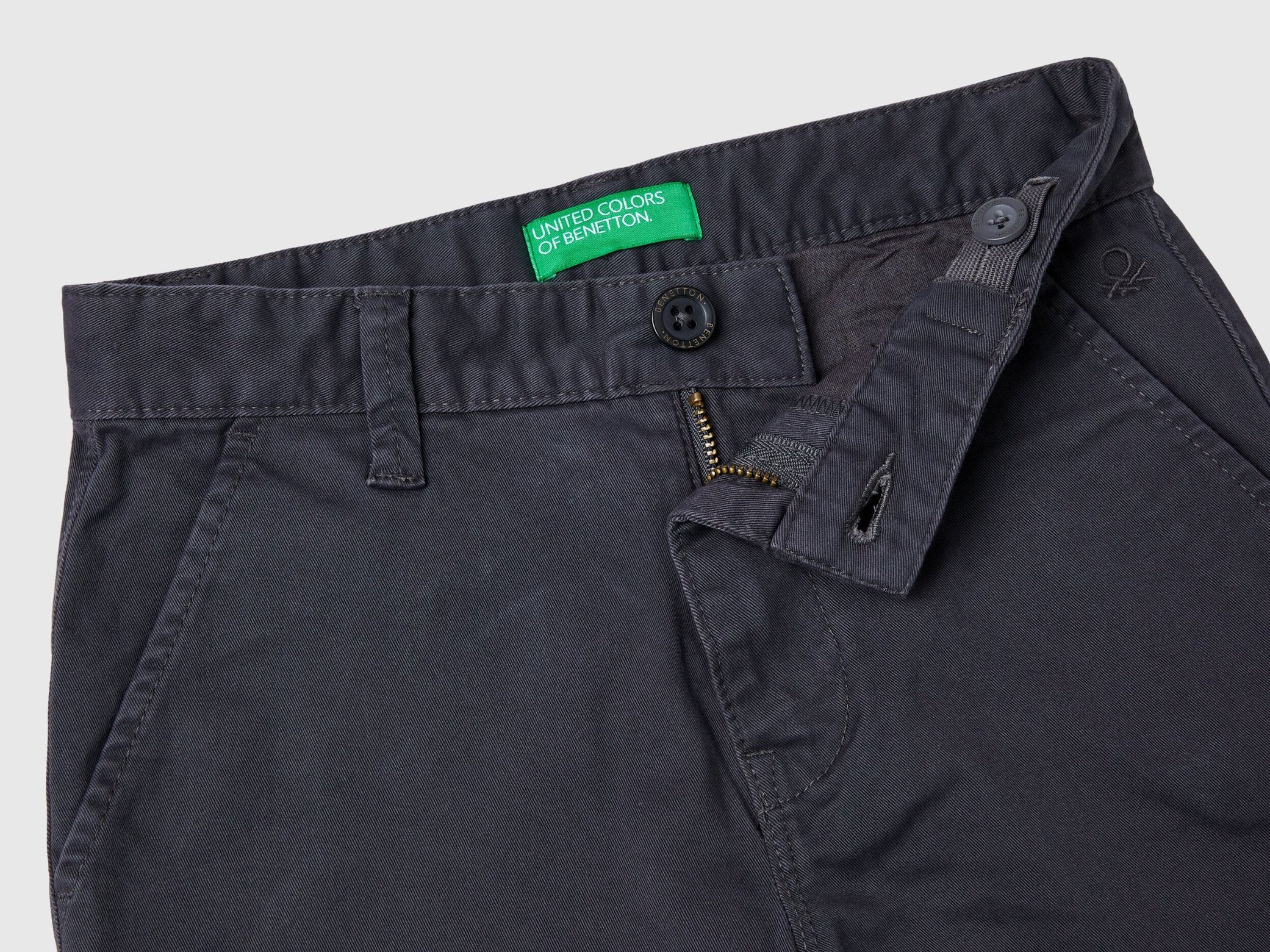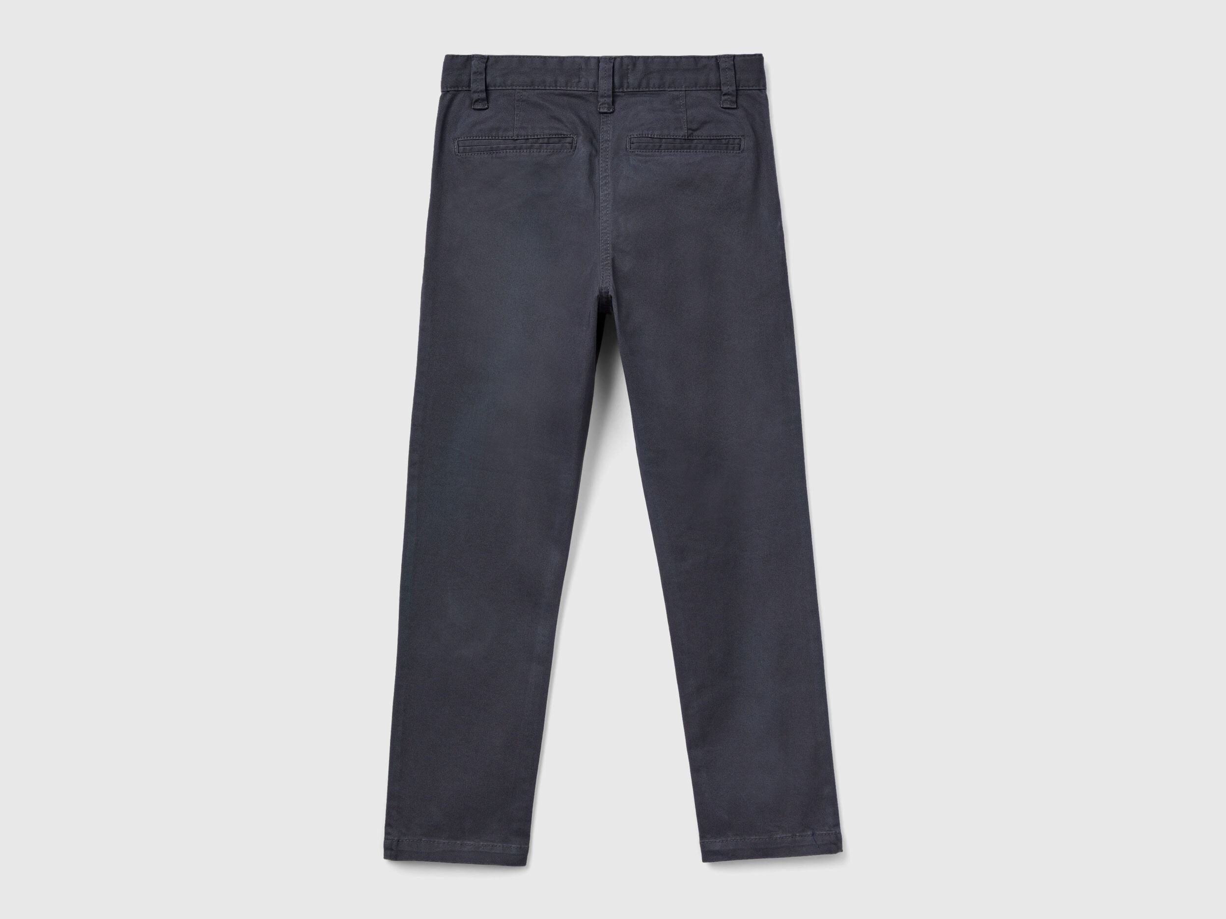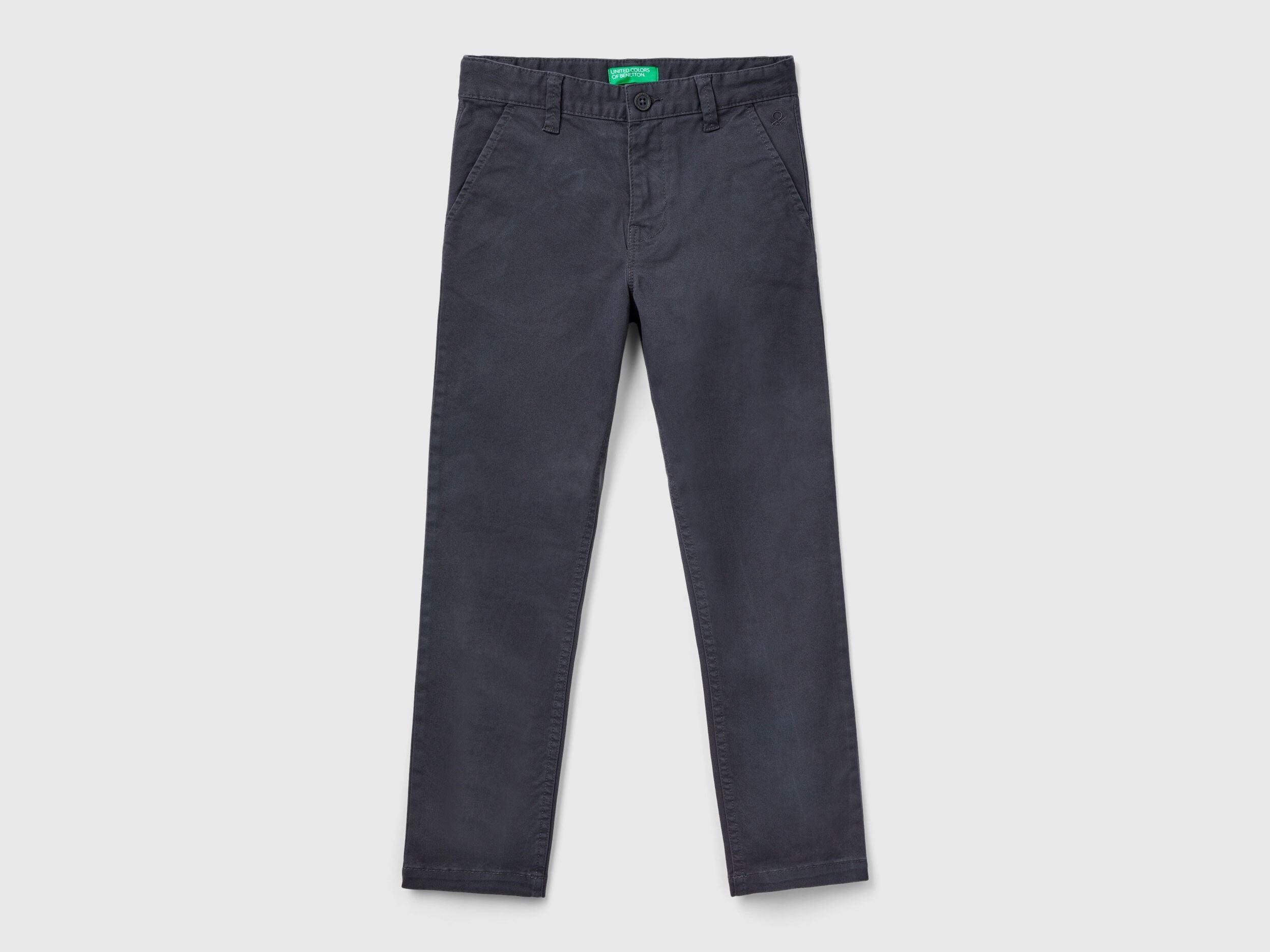 Long chinos in warm stretch cotton. Slim fit with regular waist. Opening with zip and button, front pockets. Welt pockets and small pleats on the back. Embroidered logo near the left pocket. A great alternative to classic denim.