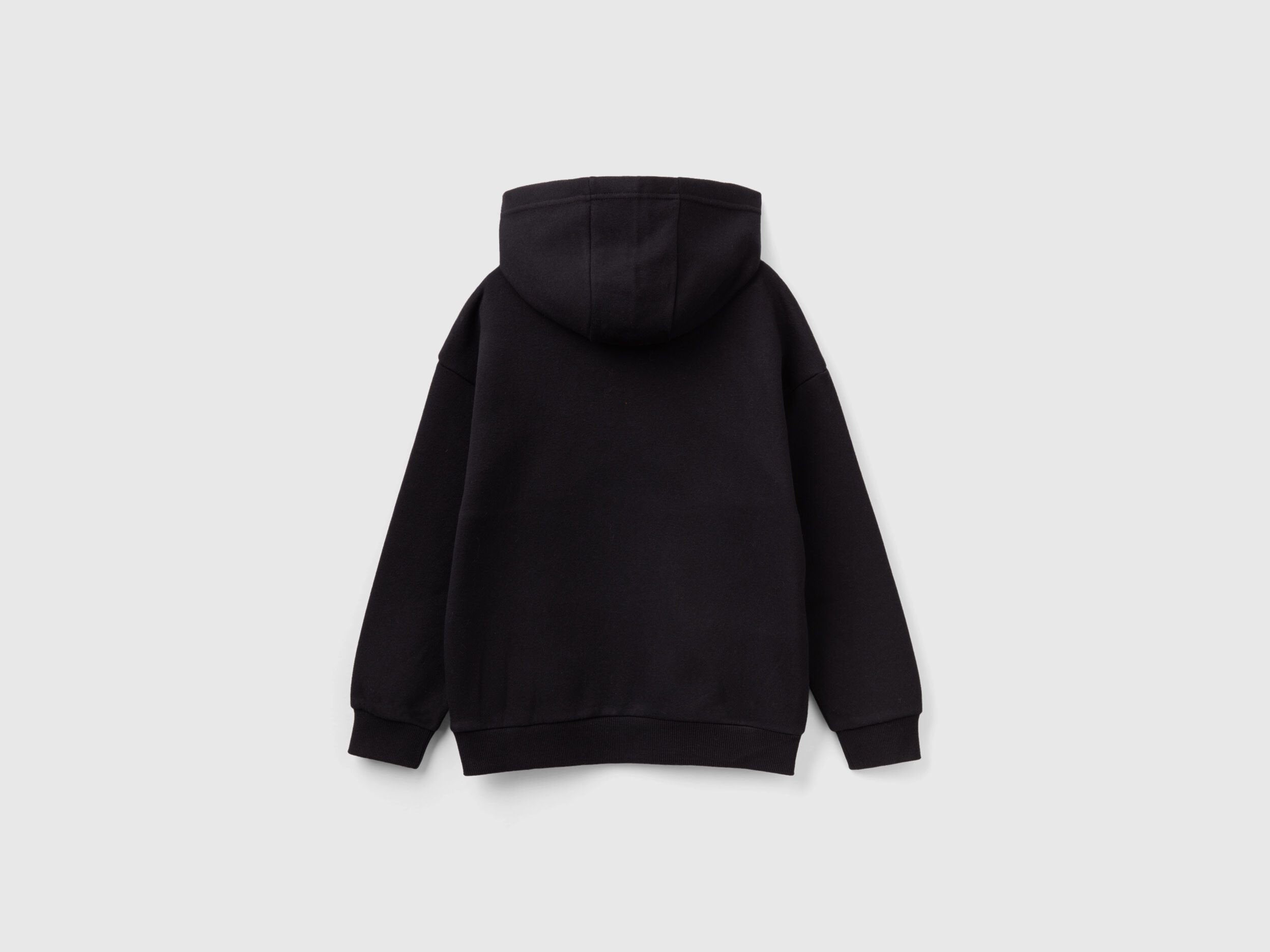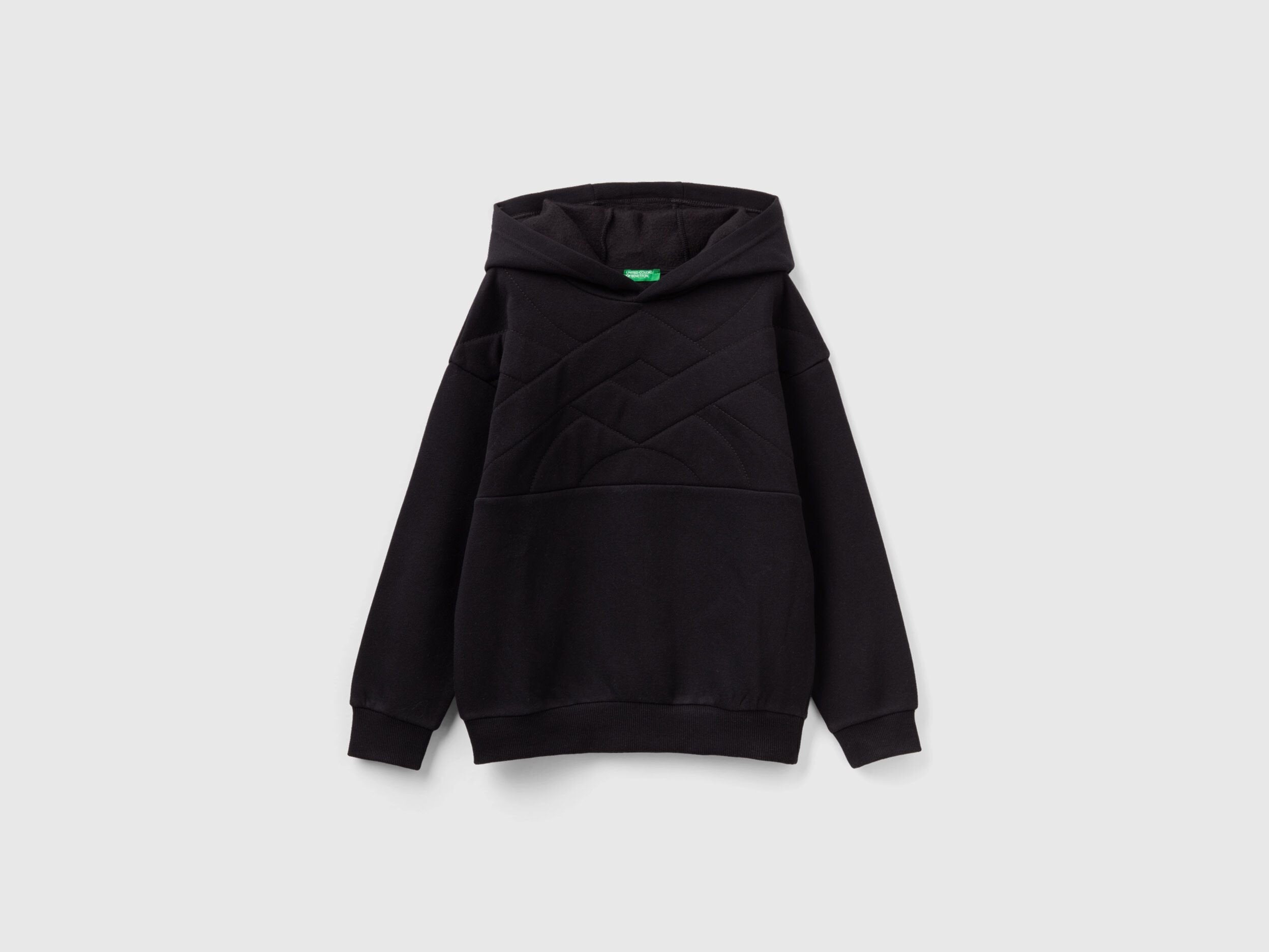Long sleeve hoodie with a warm feel. Loose fit and maxi quilted logo embossed on the front. Made of a cotton and recycled polyester blend, a fabric with low environmental impact from certified supply chains, which gives the garment comfort and softness.