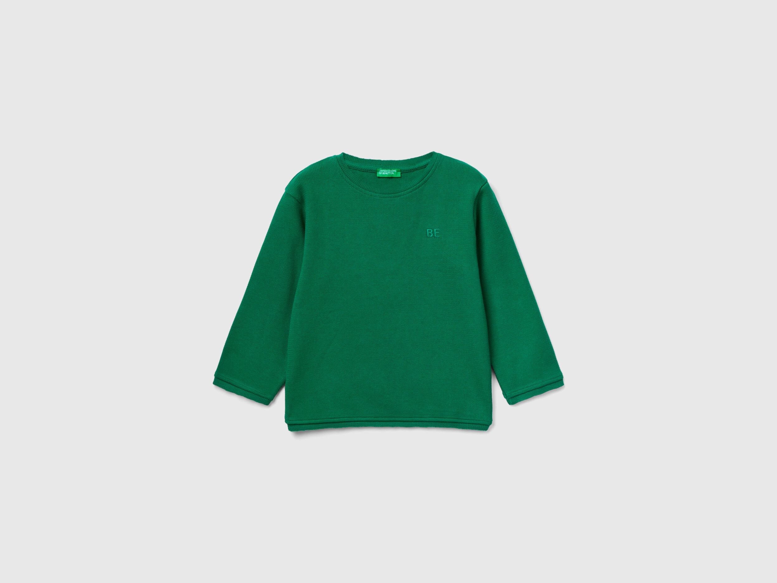 Crew neck t-shirt in soft pure cotton fabric with ribbed knit and embossing. Regular fit, long sleeves and "BE" embroidery at left breast. Soft and comfortable.