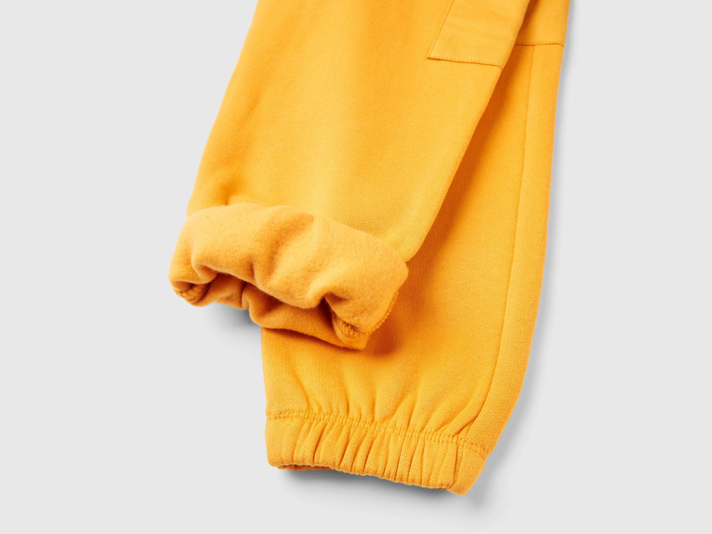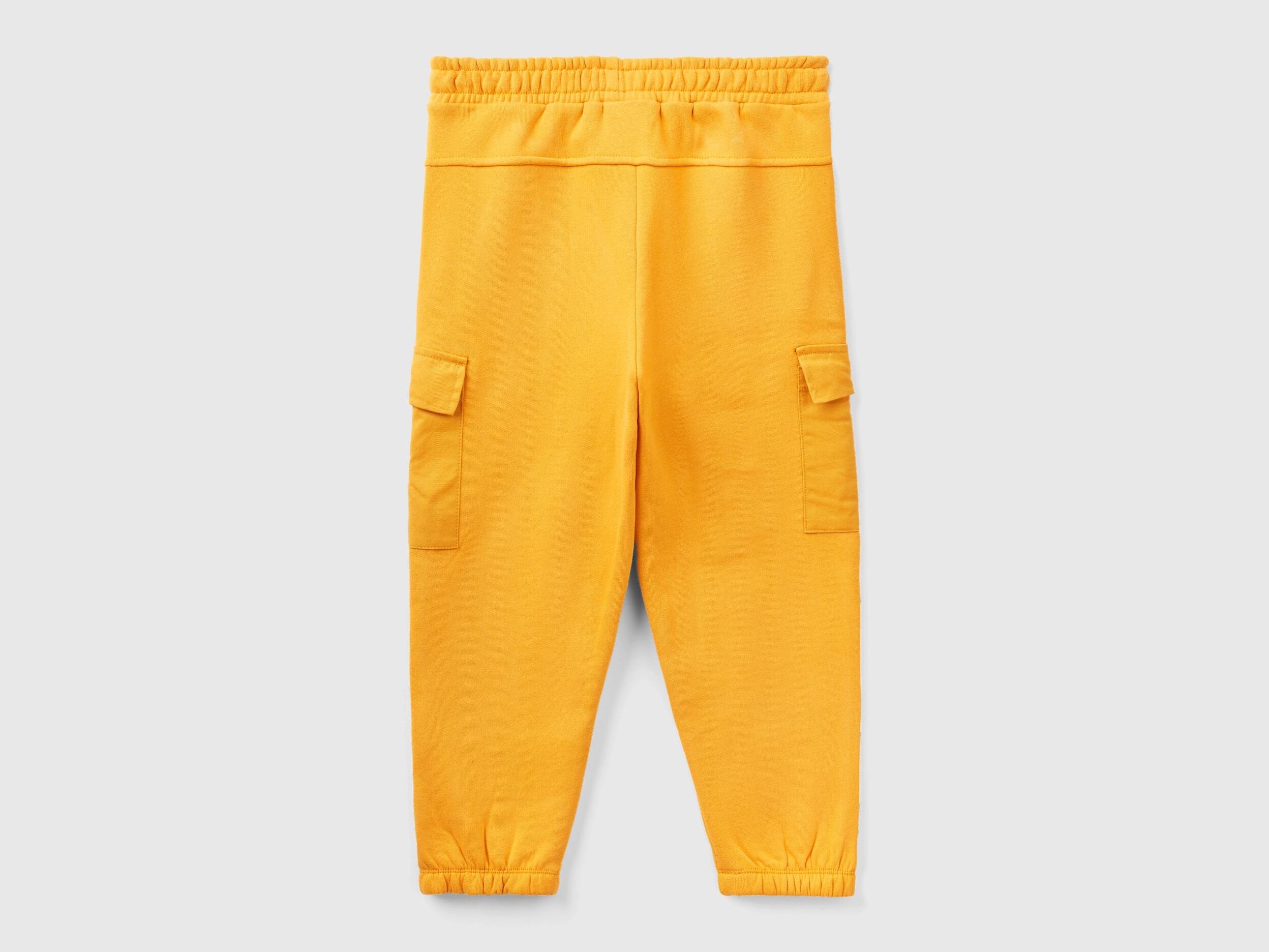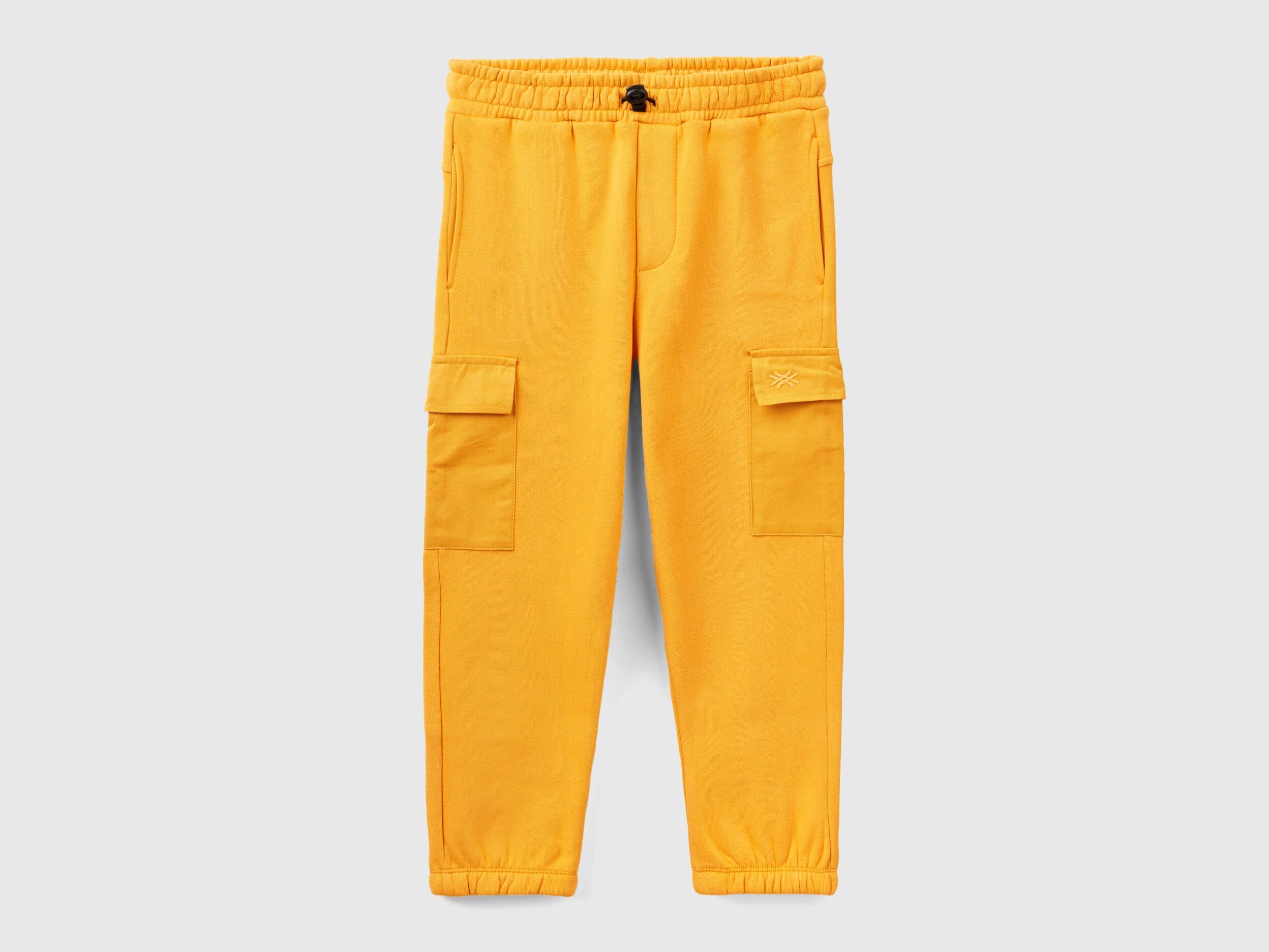 Long sweatpants in warm cotton blend. Loose fit, elastic waist with drawstring and cord stoppers. Pockets inserted into the sides and large patch pockets with flap on the side, logo embroidered on the left pocket. Cool and sporty attitude.