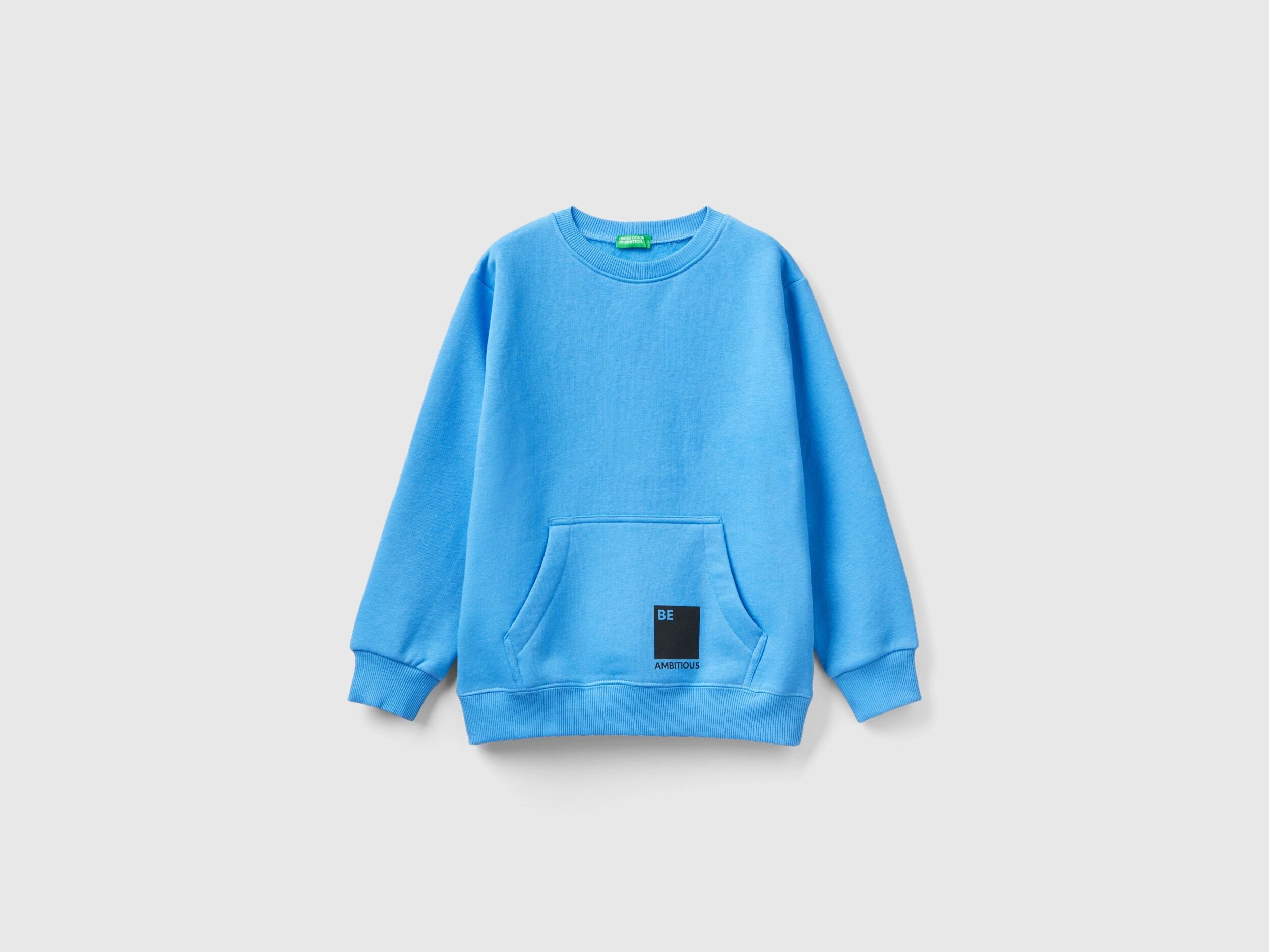 Crew neck sweatshirt in warm cotton blend. Regular fit and long sleeves. Comfy kangaroo pocket and text print on the front. Perfect for school and for free time.