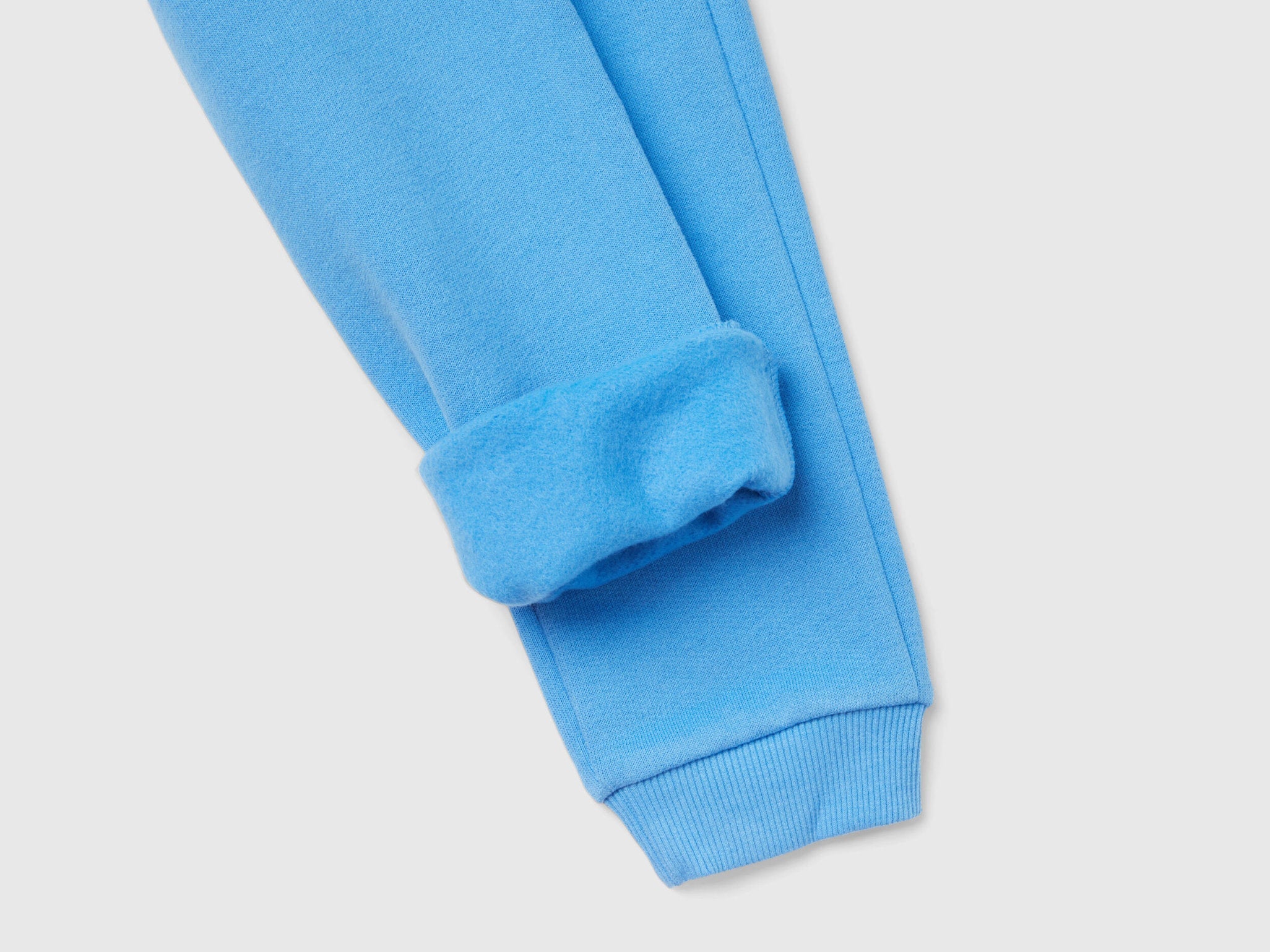 Long sweatpants in warm cotton blend. Waist with inner elastic and drawstring. Regular fit, small pocket applied on the back with embroidered logo. Sporty, practical and comfy.