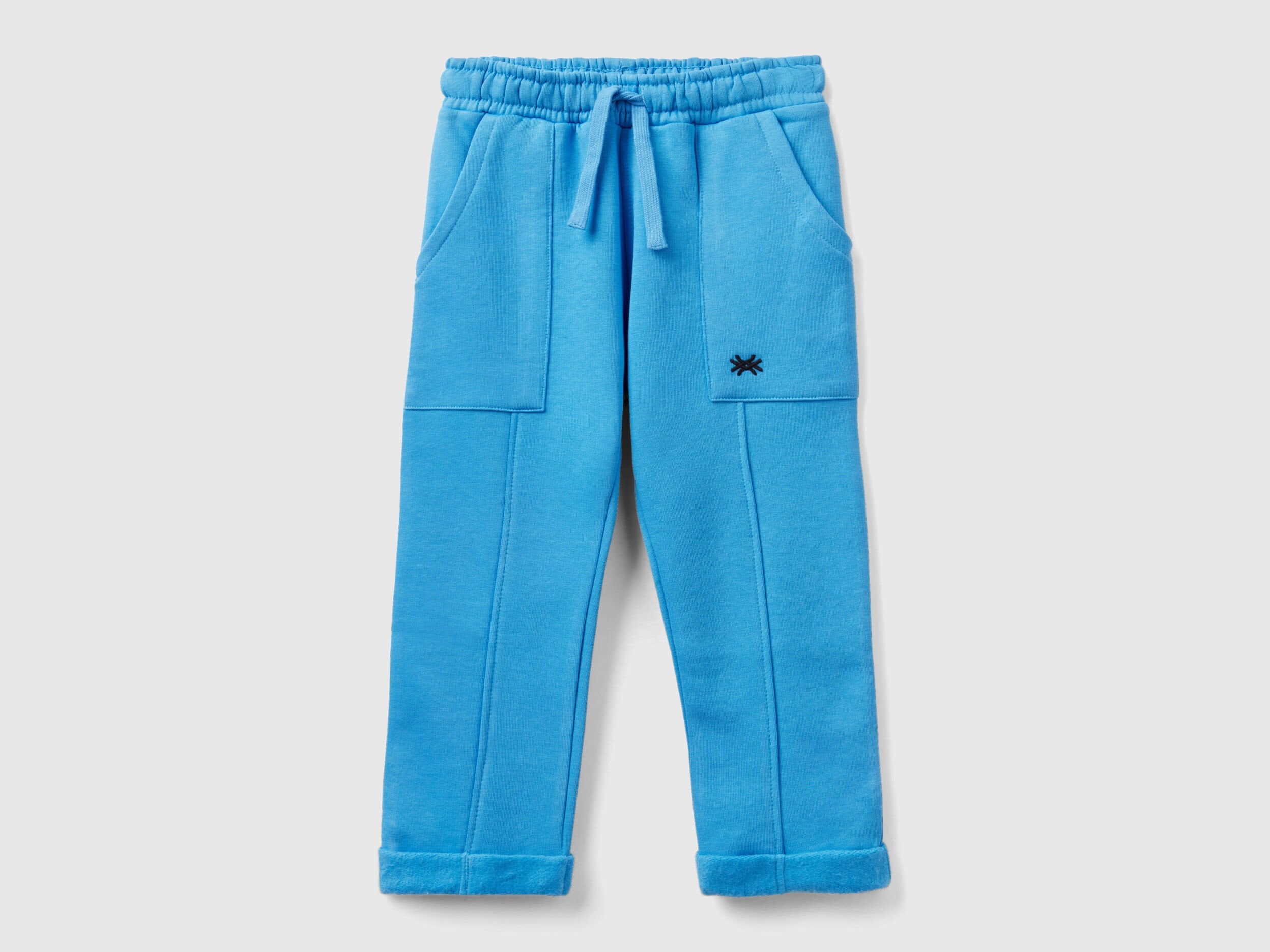 Sweatpants in warm cotton blend. Elastic waist with drawstring and maxi patch pockets on the front. Front cut motif, with rolled up leg openings. Maximum comfort, to move freely.