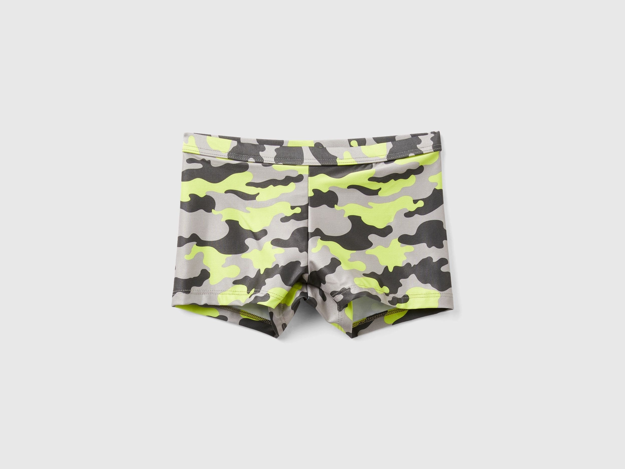 Body-hugging swim trunks in stretch fabric. Internal elastic waistband and camouflage print all over.