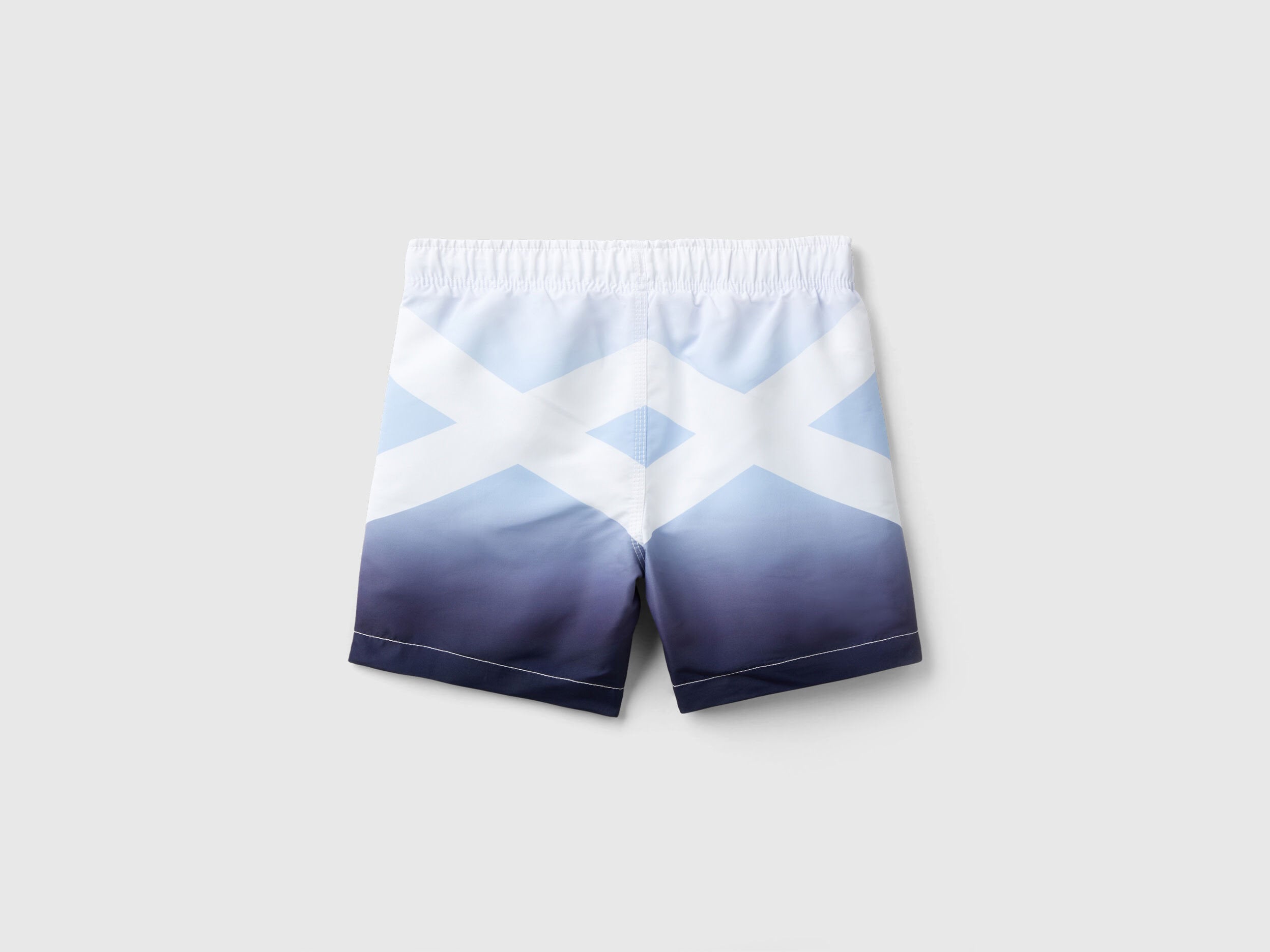 Swim trunks with maxi logo print. Waist with full elastic and drawstring, pockets inserted on the sides.