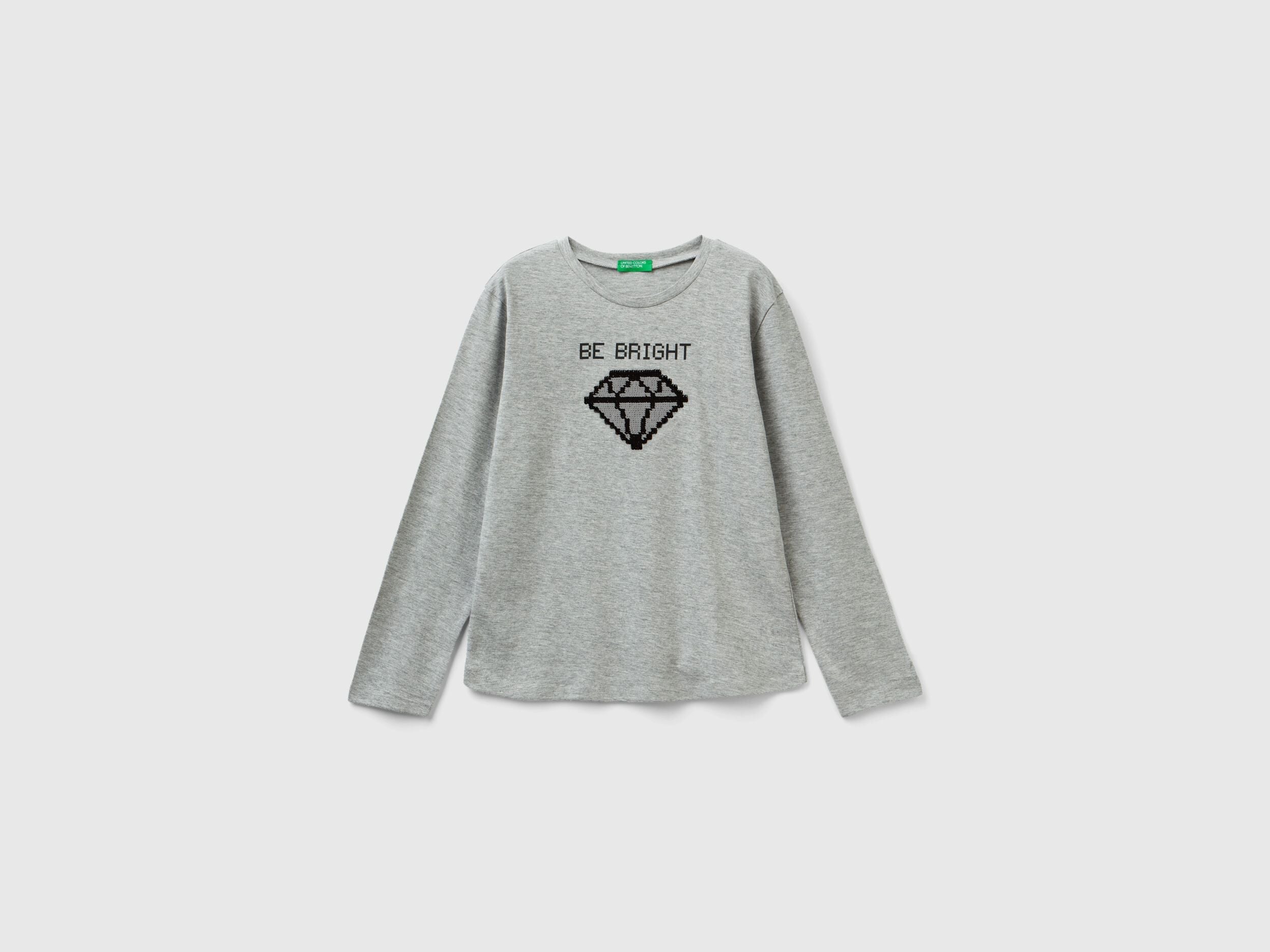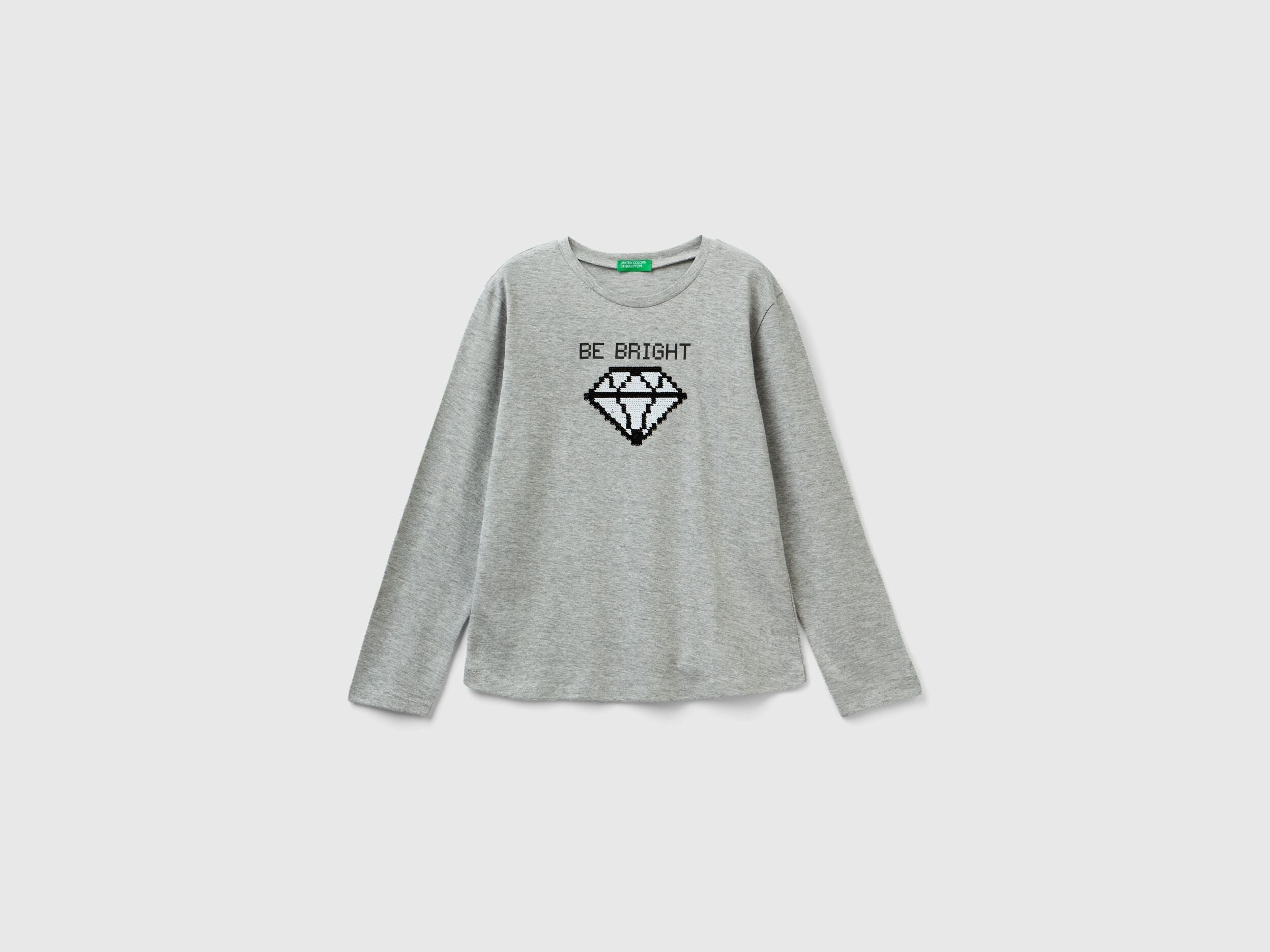 Crew neck t-shirt with long sleeves in pure cotton with a regular fit. Front print embellished with reversible sequin details. To add a hint of glamour to any everyday outfit.