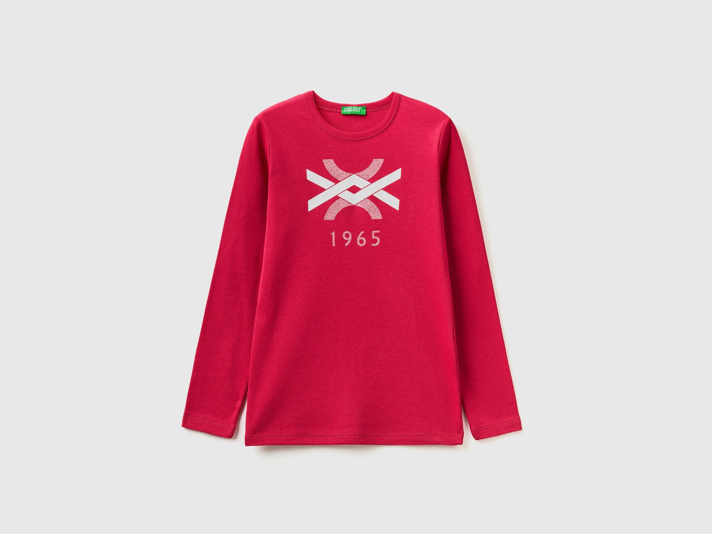 Crew neck t-shirt with long sleeves in pure organic cotton with a regular fit. A basic piece that's comfy on the skin, enriched by glittery logo print on the front.
