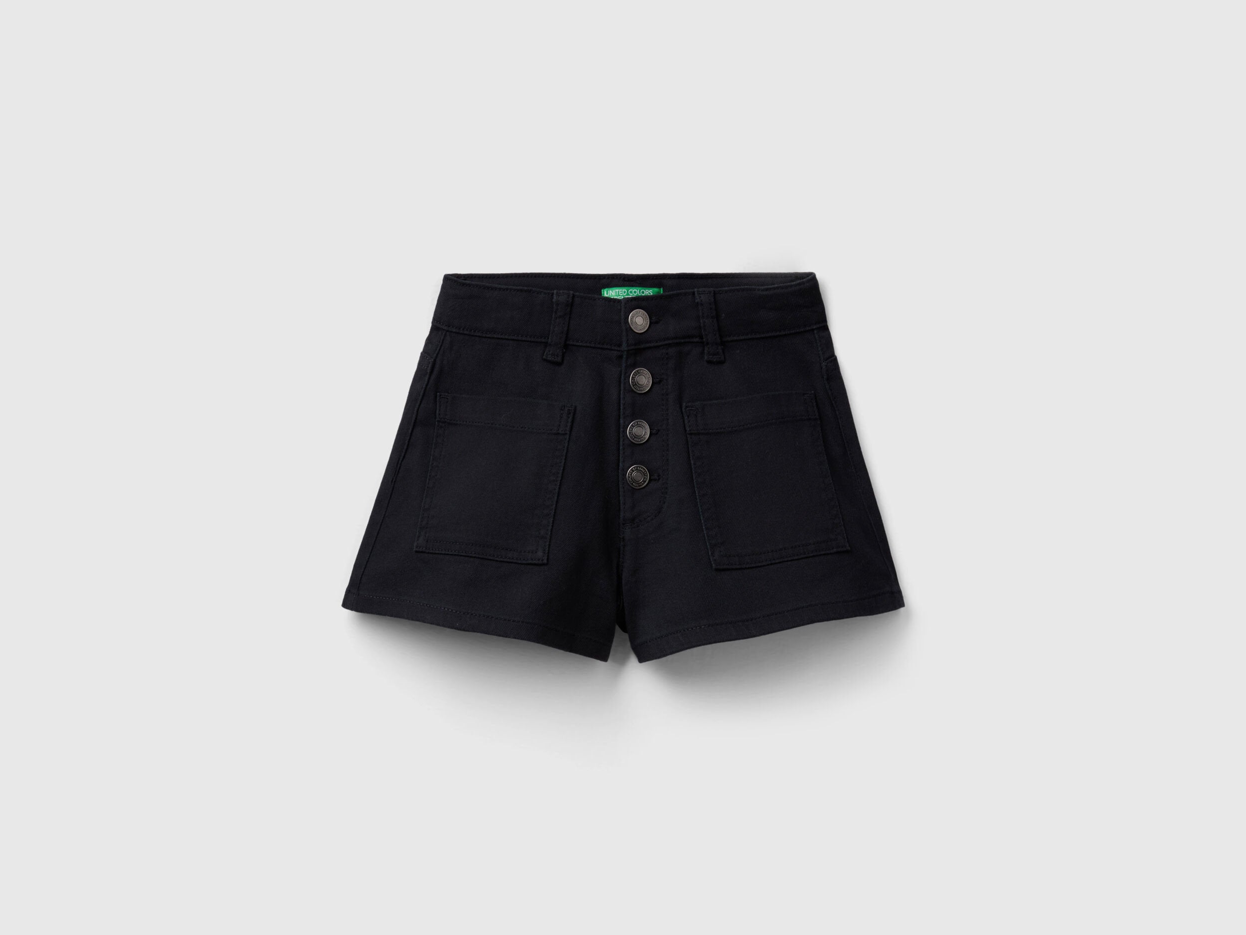 Shorts in stretch cotton. Front opening with buttons, patch pockets on the front, logo embroidered on a back pocket. Comfortable and alternative.
