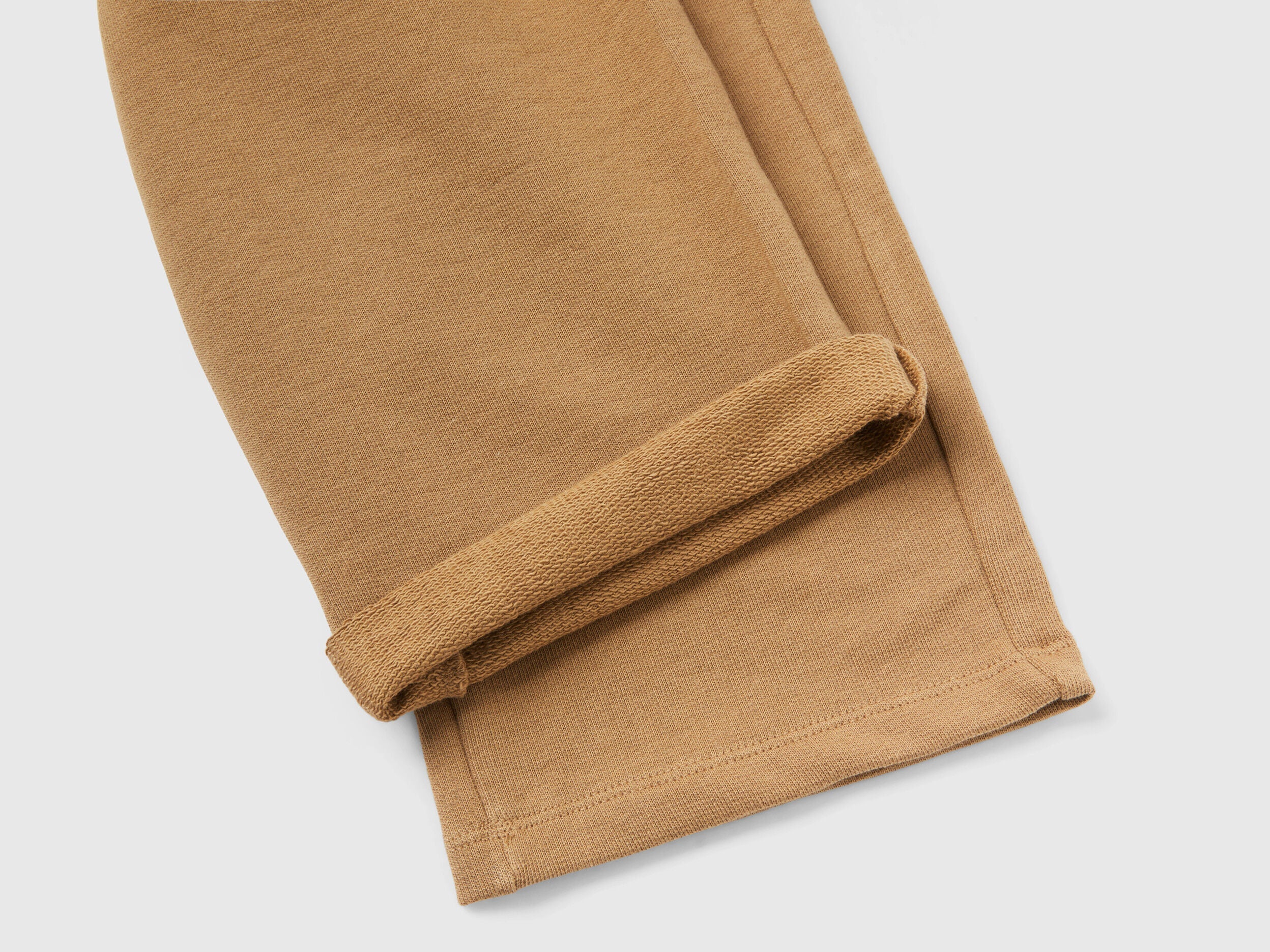 Sweatpants in pure cotton with consistent yet light texture. Palazzo cut with wide and soft slightly cropped leg. Regular waist with elastic, drawstring and front pockets. Comfy and versatile, perfect for school.