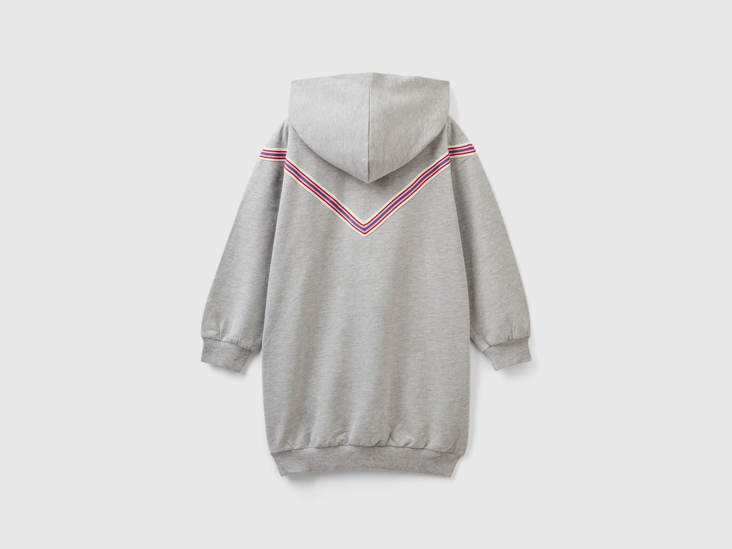 Short sweater dress in stretch cotton and viscose blend. Equipped with a hood, long sleeves and a ribbed band at front and back. Loose fit and mid-thigh length. Feminine street style.