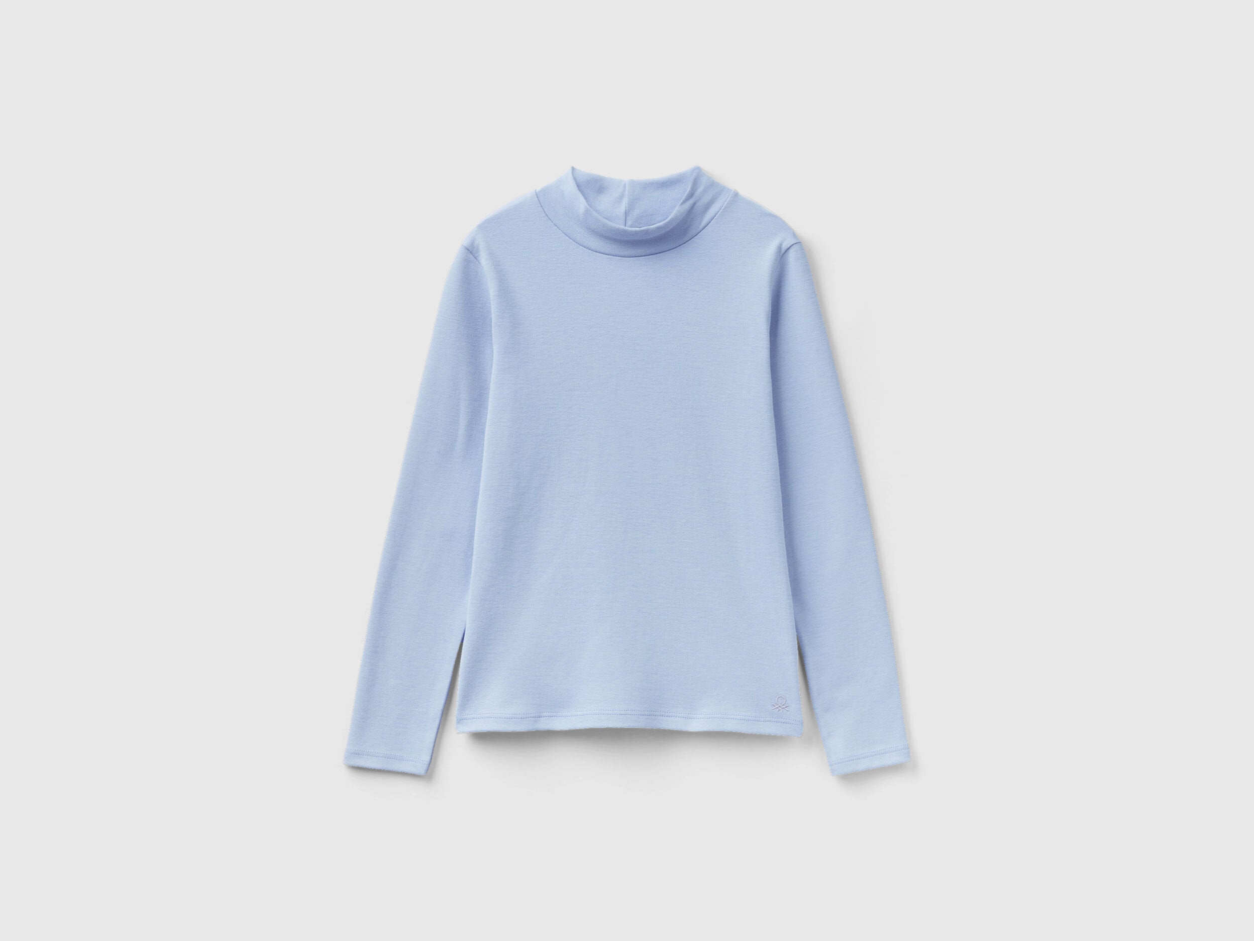T-shirt with high collar in firm pure organic cotton. Basic cut and small tone-on-tone logo embroidered at the bottom left. Perfect for a multi-layer look