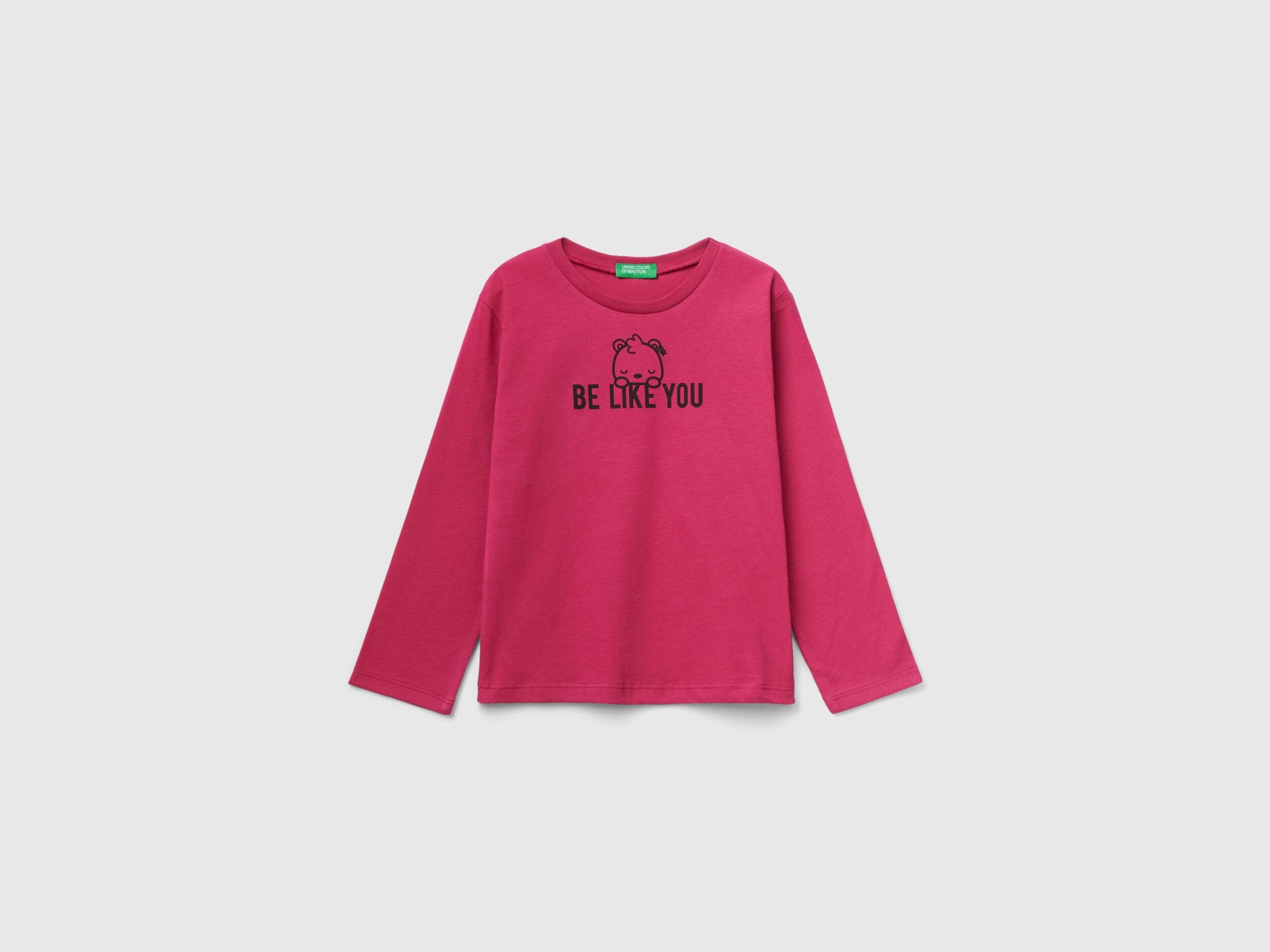 Crew neck t-shirt in pure warm cotton. Boxy fit, long sleeves and animal print with front slogan. Clean lines for an everyday garment.