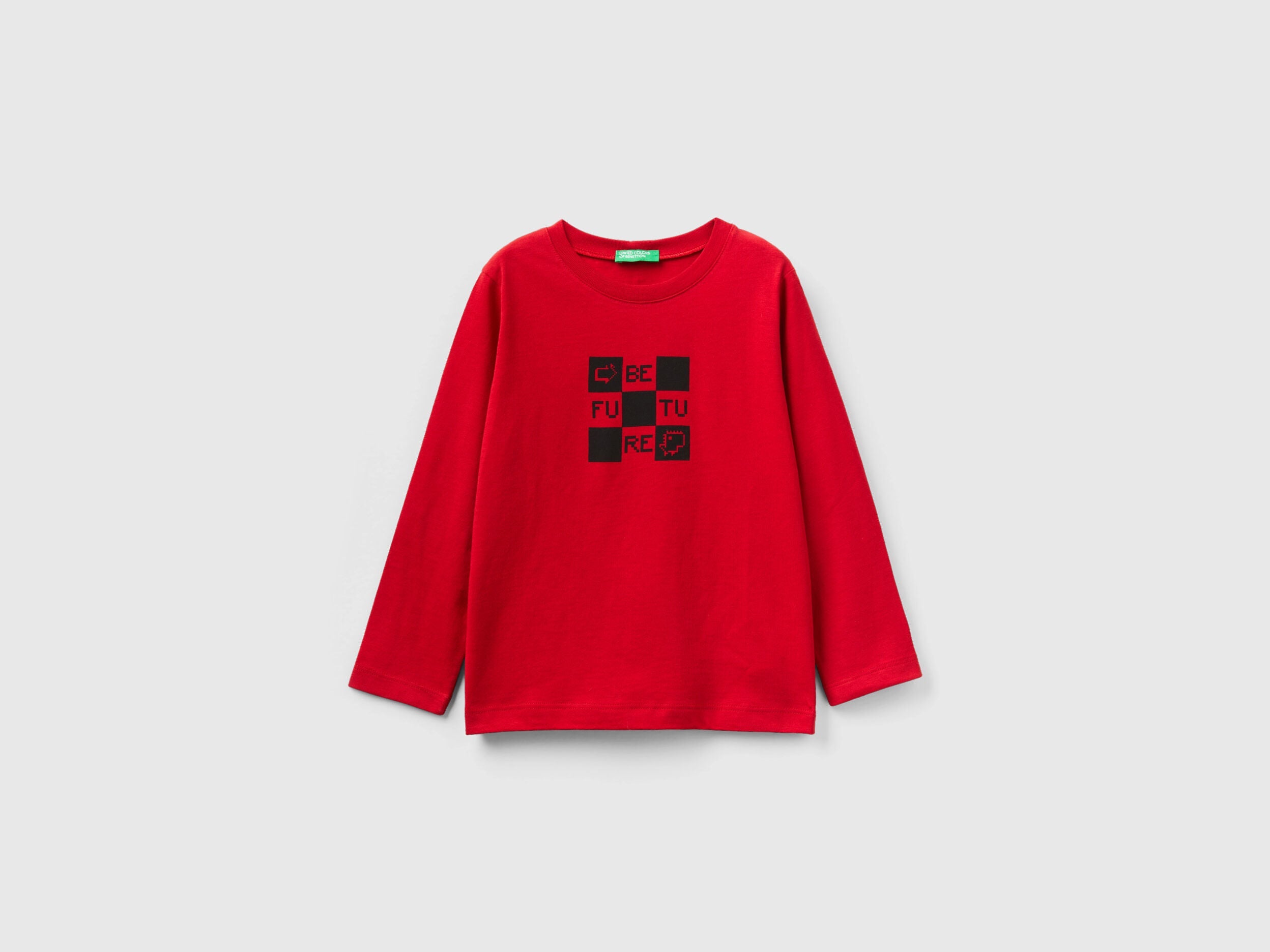 Long sleeve crew neck t-shirt in pure cotton. Relaxed fit and printed slogan graphic on front. An original touch for his casual looks.