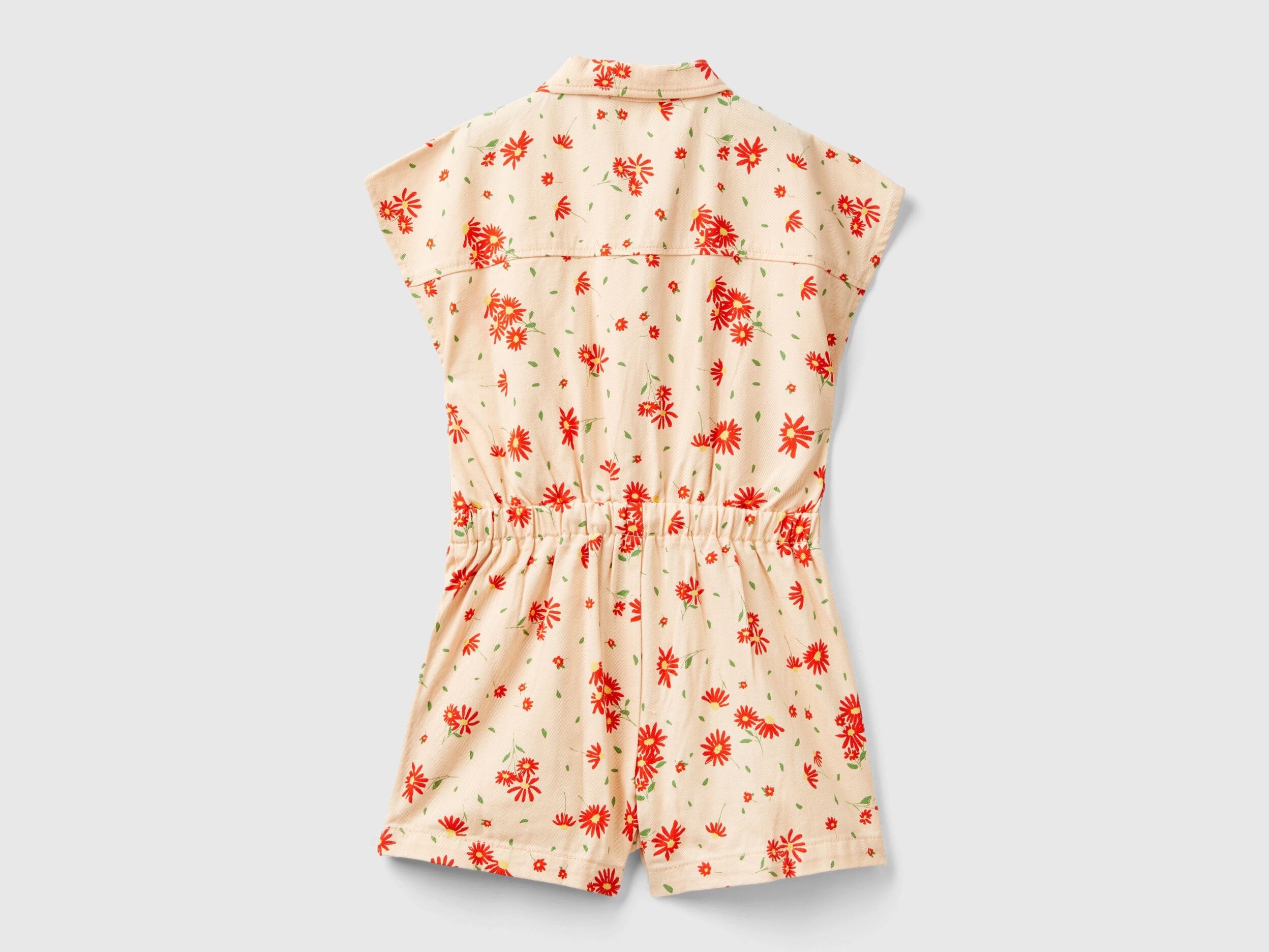 hort sleeveless jumpsuit in pure cotton with allover floral print. Shirt collar and front button opening with zipper. Drawstring at waist and front pockets. For cool, whimsical and striking outfits.