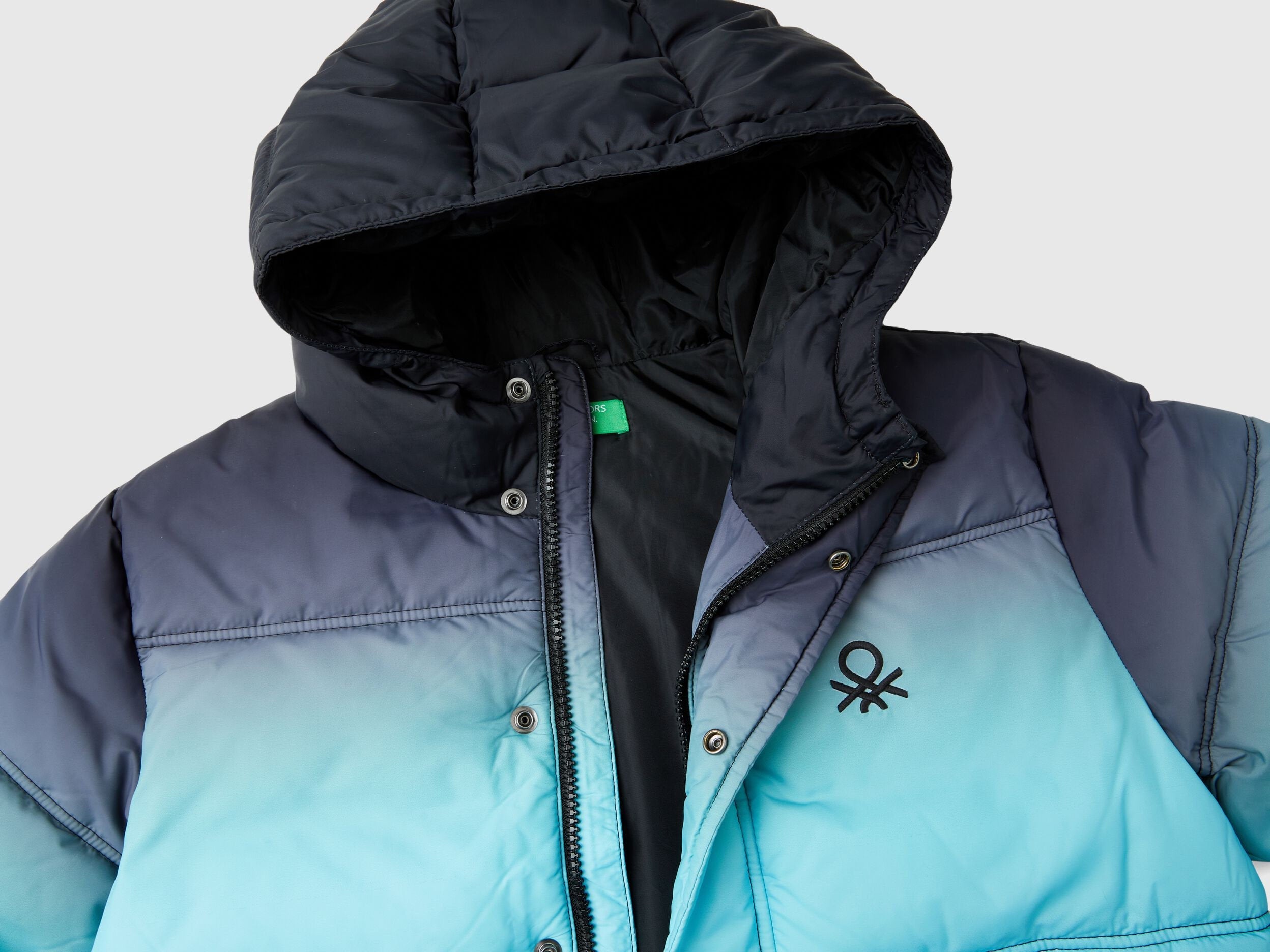 Puffer jacket with special allover fade effect. Featuring a hood, zip opening with zip and snap buttons. Front pockets and logo embroidered at left breast. Comfortable and cozy, ideal for the cold season.