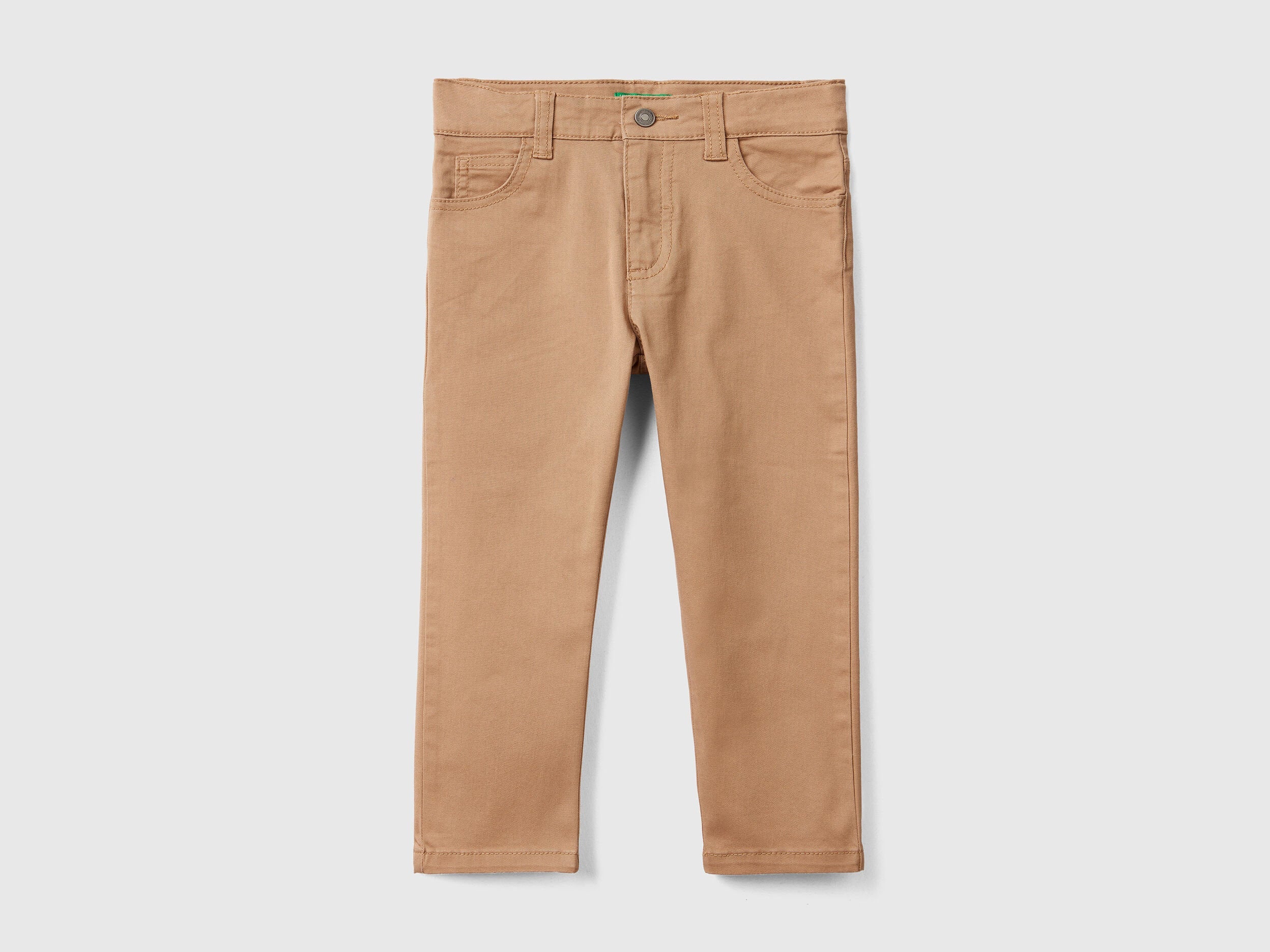 Long five-pocket trousers in stretch cotton. Snug fit and regular waist, zip and button opening. Maximum comfort thanks to the inner elastic waist.