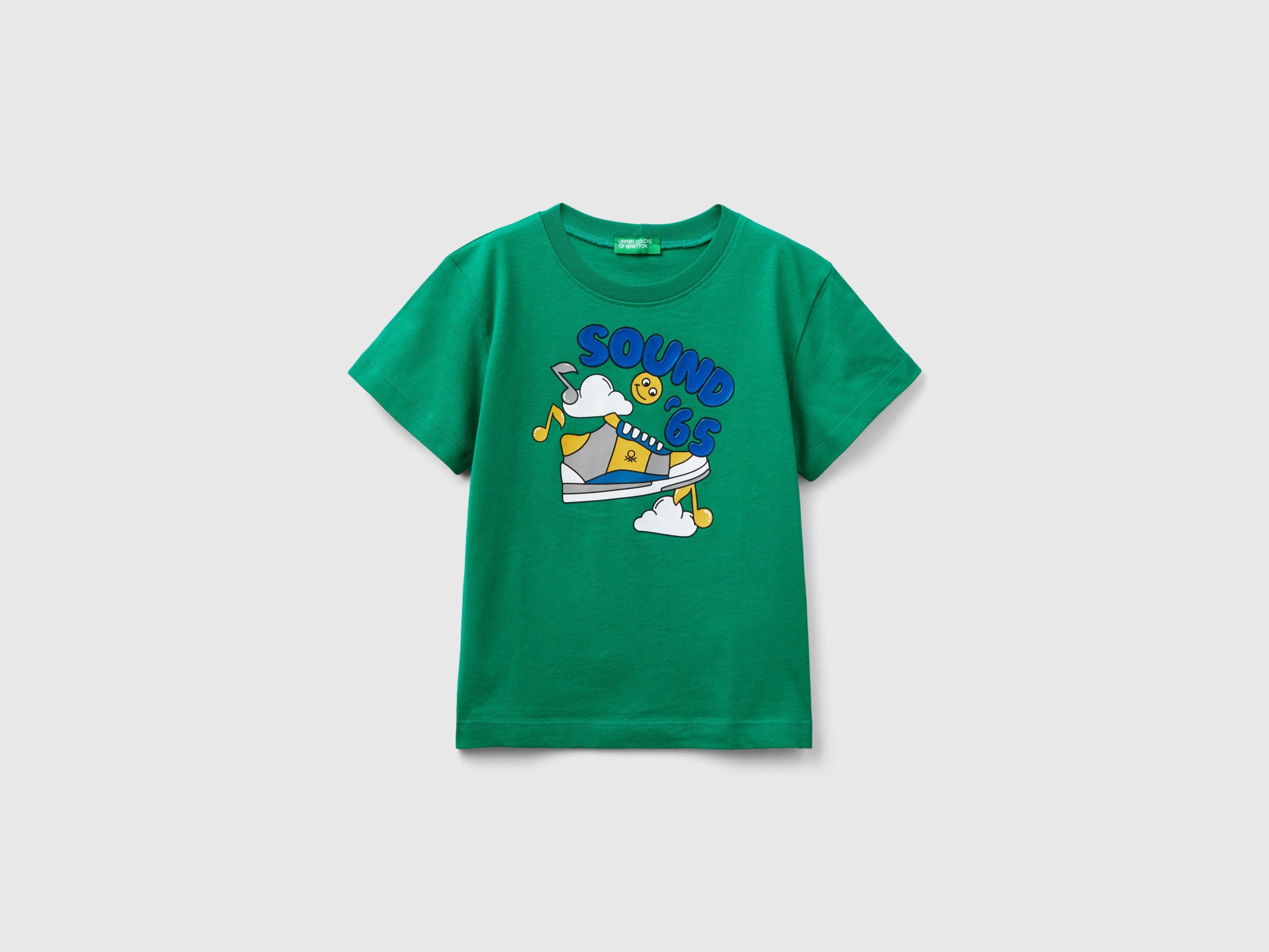Short sleeve crew neck t-shirt in pure cotton. Embossed glossy print graphics on the front. For everyday and trendy outfits.