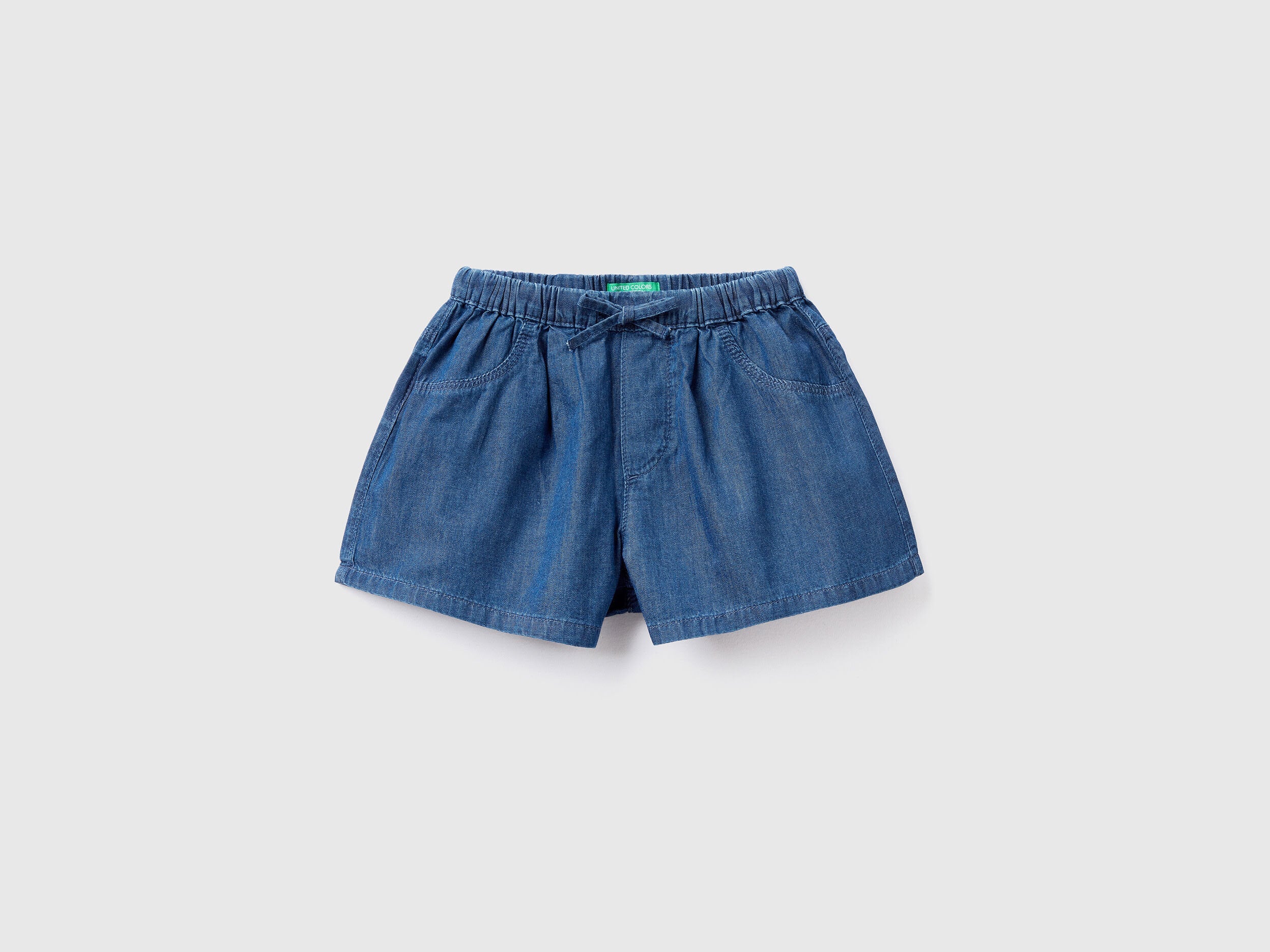 Shorts in pure cotton lightweight fabric. Inner elastic and drawstring waist. Rounded front pockets and patch pockets on the back with embroidered logo. Light, comfortable and as versatile as jeans.