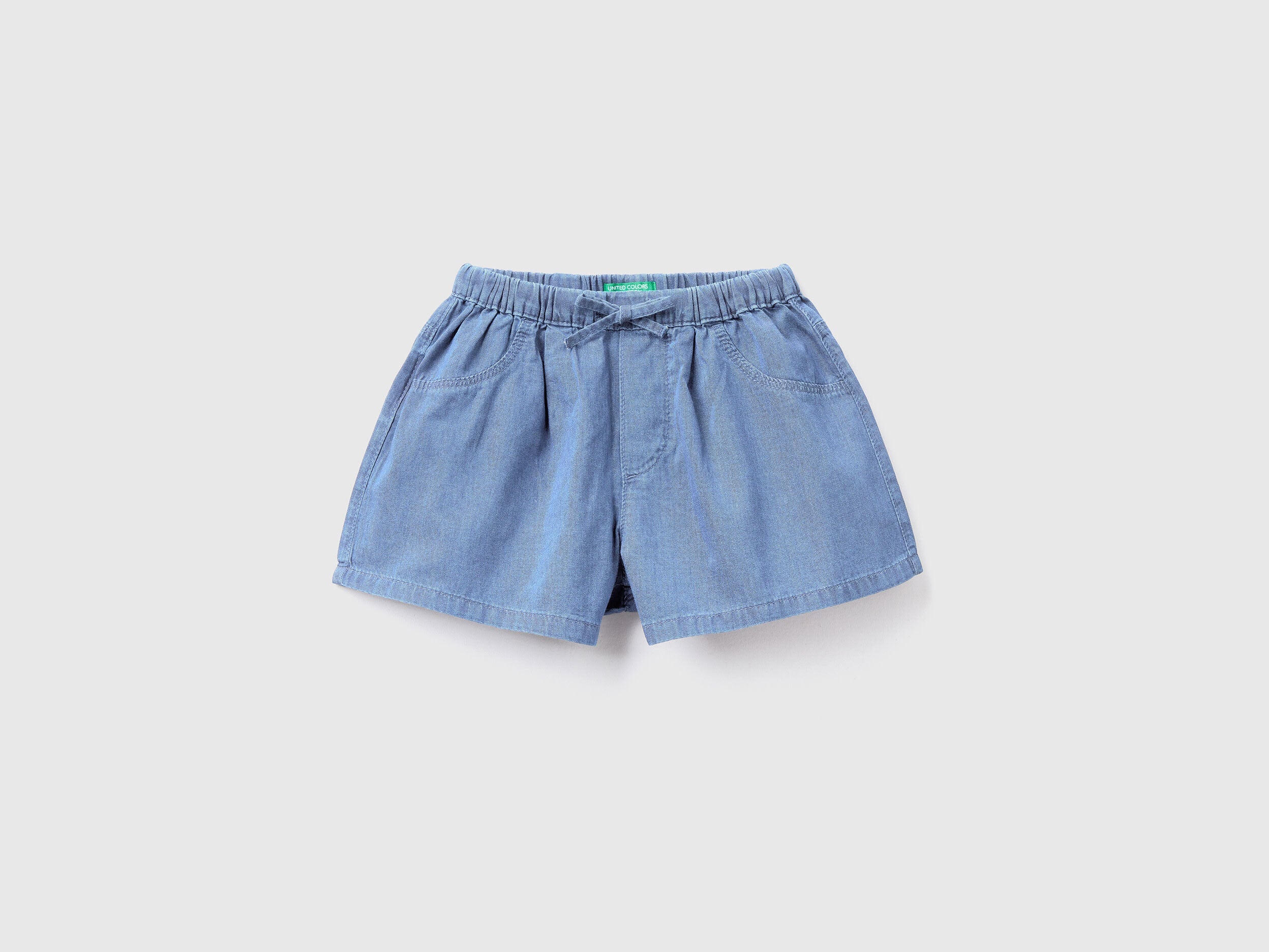 Shorts in pure cotton lightweight fabric. Inner elastic and drawstring waist. Rounded front pockets and patch pockets on the back with embroidered logo. Light, comfortable and as versatile as jeans.