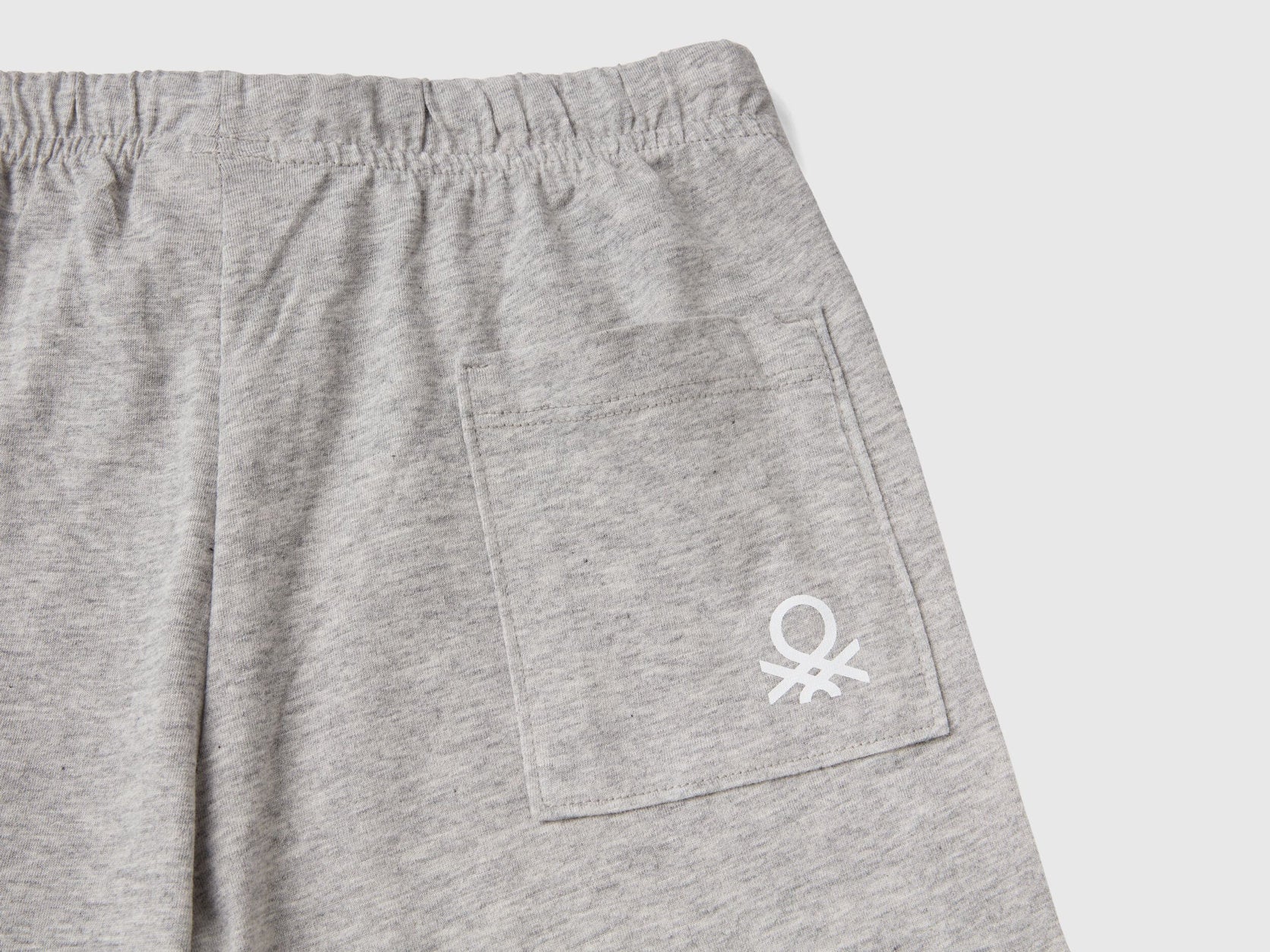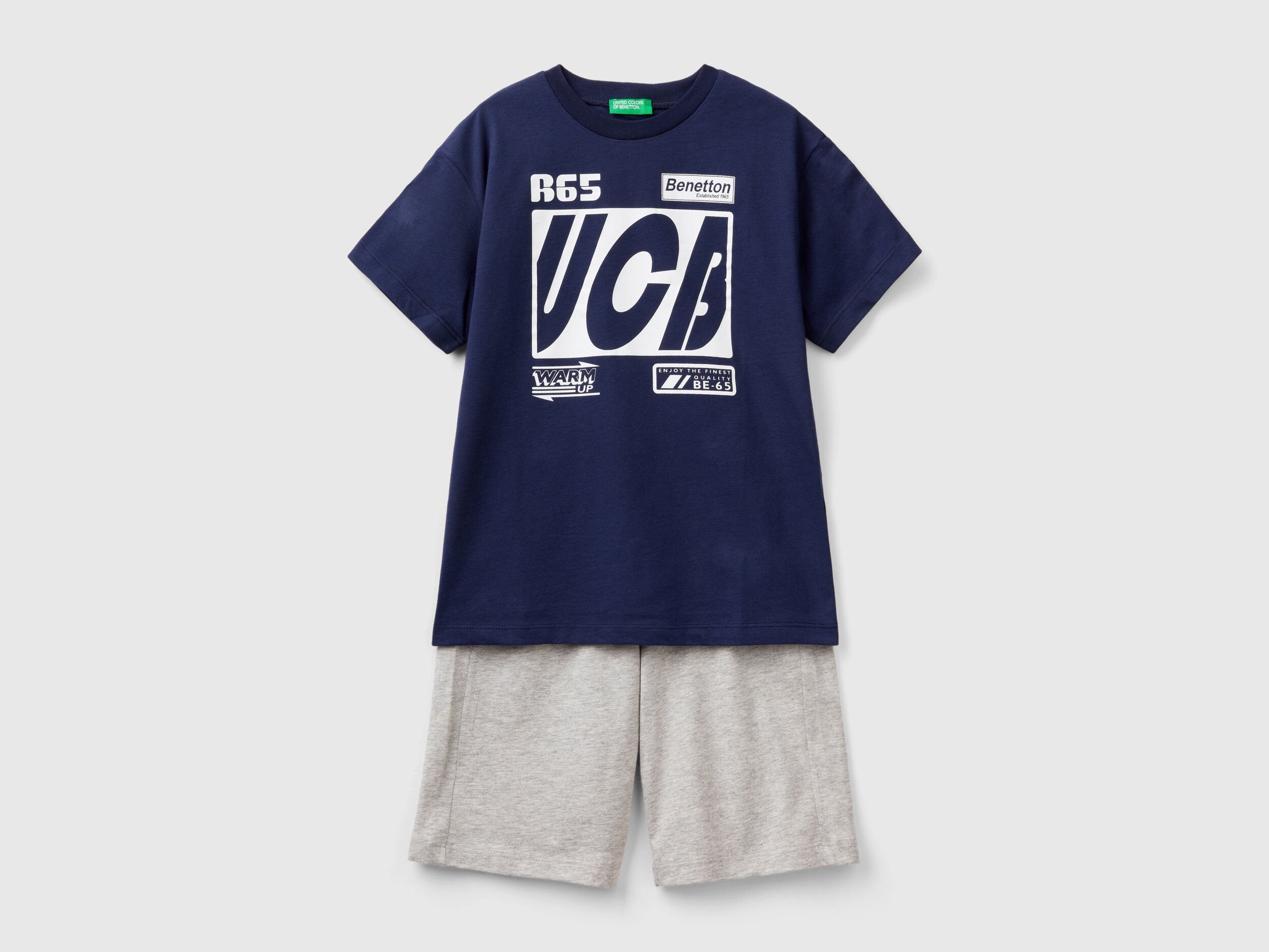 Matching outfit in pure cotton. Short sleeve crew neck t-shirt with front print. Short trousers with internal elastic and drawstring waist, patch pocket on the back with printed logo. Ideal for movement and free play.
