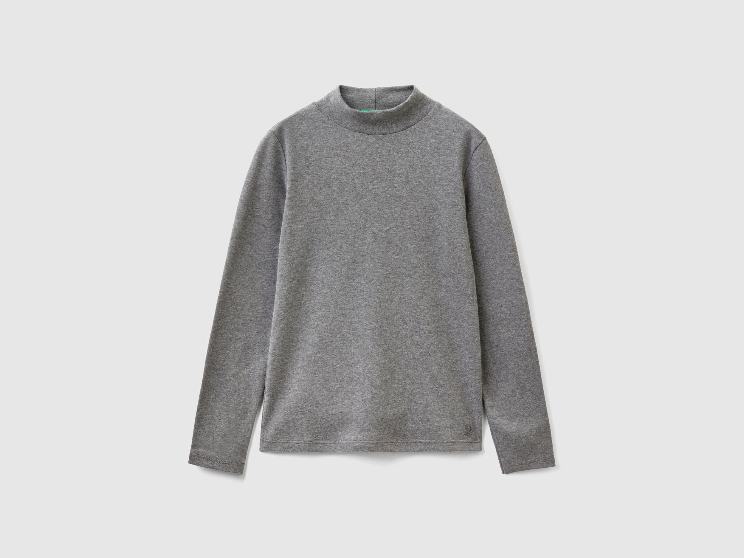 T-shirt with high collar in firm pure organic cotton. Basic cut and small tone-on-tone logo embroidered at the bottom left. Perfect for a multi-layer look.
