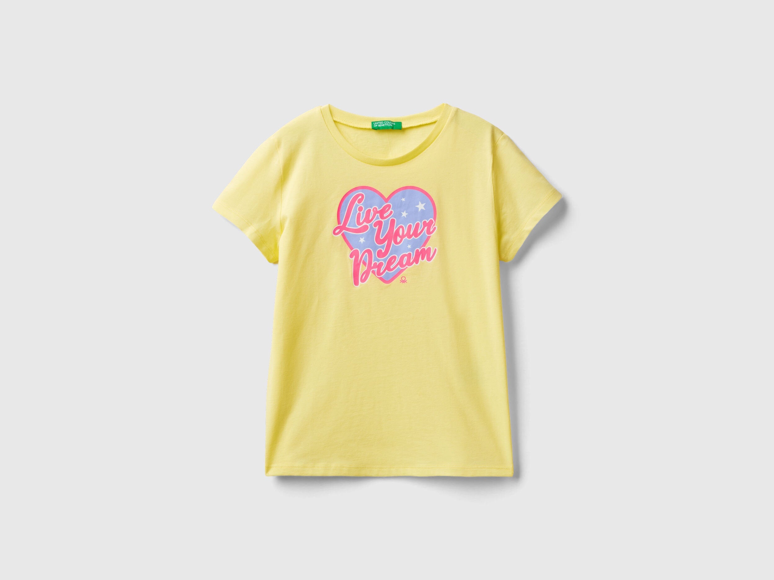 Short sleeve crew neck t-shirt in pure cotton. Regular fit and multicolor text print on the front with neon details. Comfortable and for everyday wear with a feminine touch.
