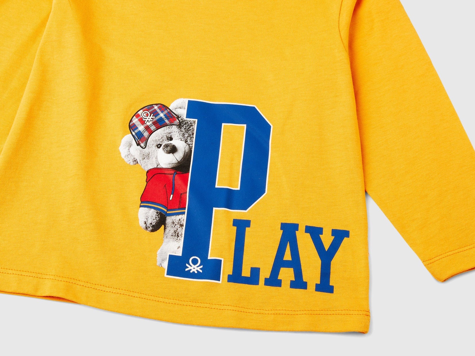 Long sleeve t-shirt in soft organic cotton. Round neck, photographic print with slogan on the front. Daily, cool and sustainable.