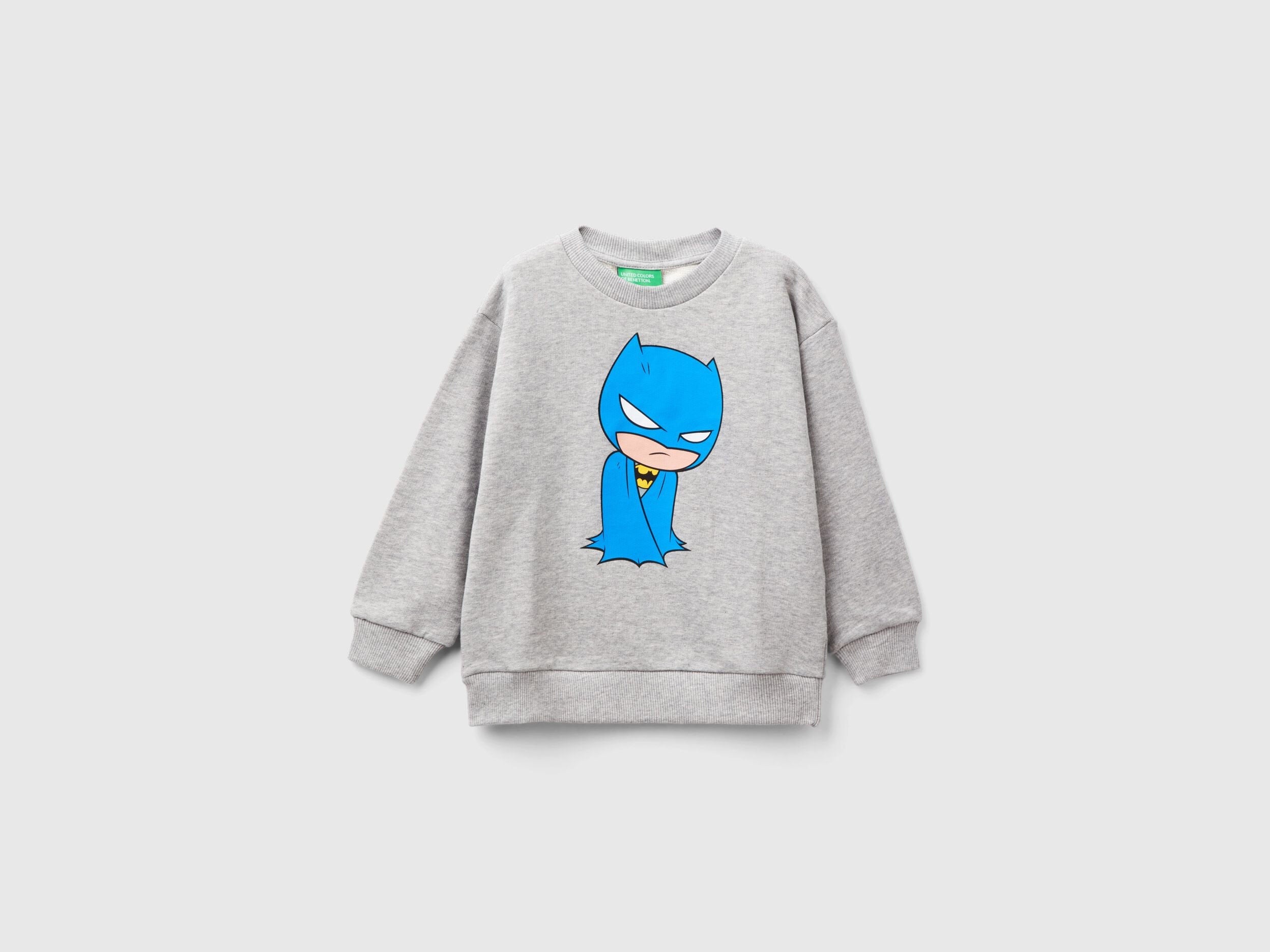 Sweatshirt in pure cotton with light yet consistent feel. Relaxed fit, long sleeves and round neck. Batman ©&» DC Comics front print. Batman logo print and embroidered Benetton logo under back neckline. For budding little superheroes.